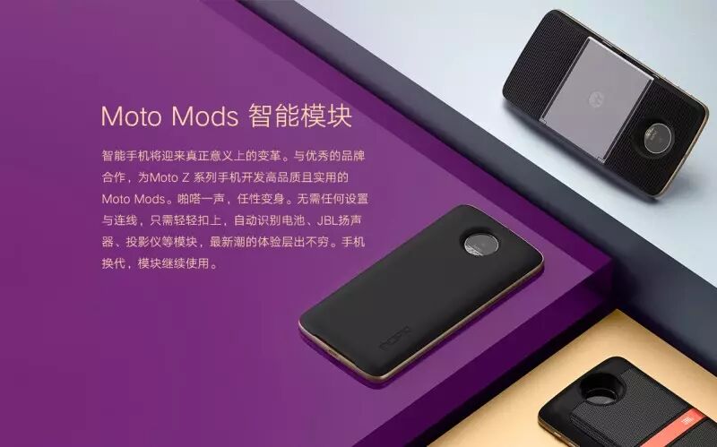 手机是今天离不开身的一个电子产品,如何实现能听音乐,能看电影,更能拍照,是很不容易的,但 Moto Z这款智能手机,背面却可以搭载音响、投影、相机等模块,让用户的体验更为专业,解决消费者多方面的需求。