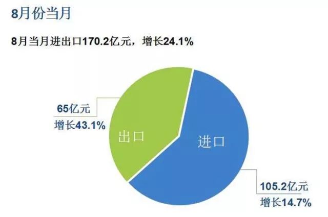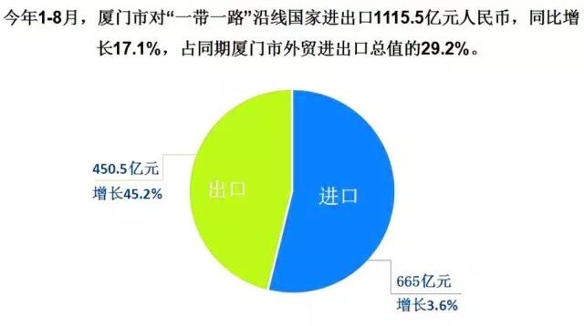 1-8月厦门市与东盟国家进出口602亿元,增长24.3%,占同期厦门市与“一带一路”沿线国家进出口总值的54%,显示出良好的增长势头。