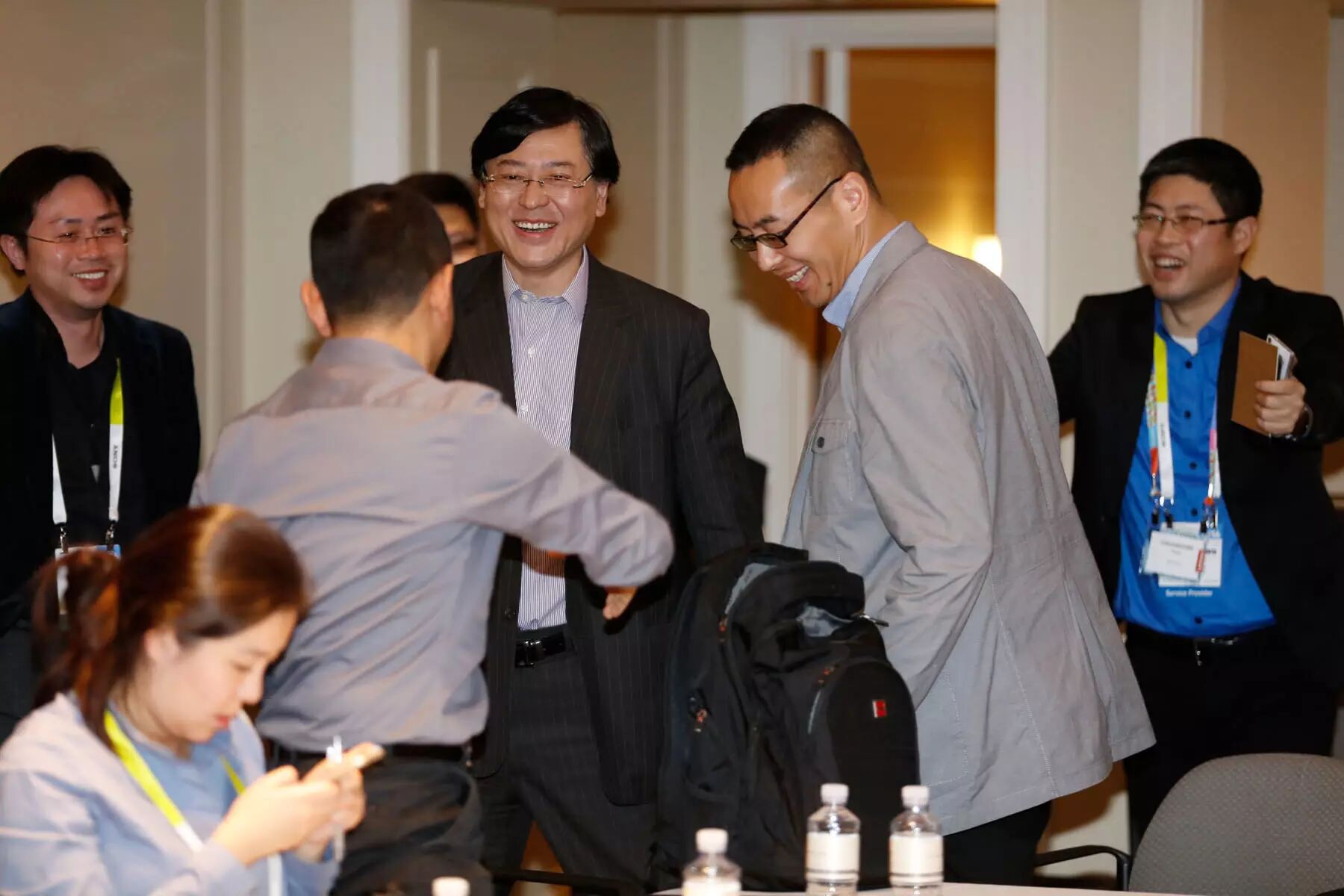 几番say cheese,摆pose之后,我只是揉了下快被闪晕双眼的空档,发现Boss元庆和其他几位联想高管已经被媒体朋友们包围了起来。