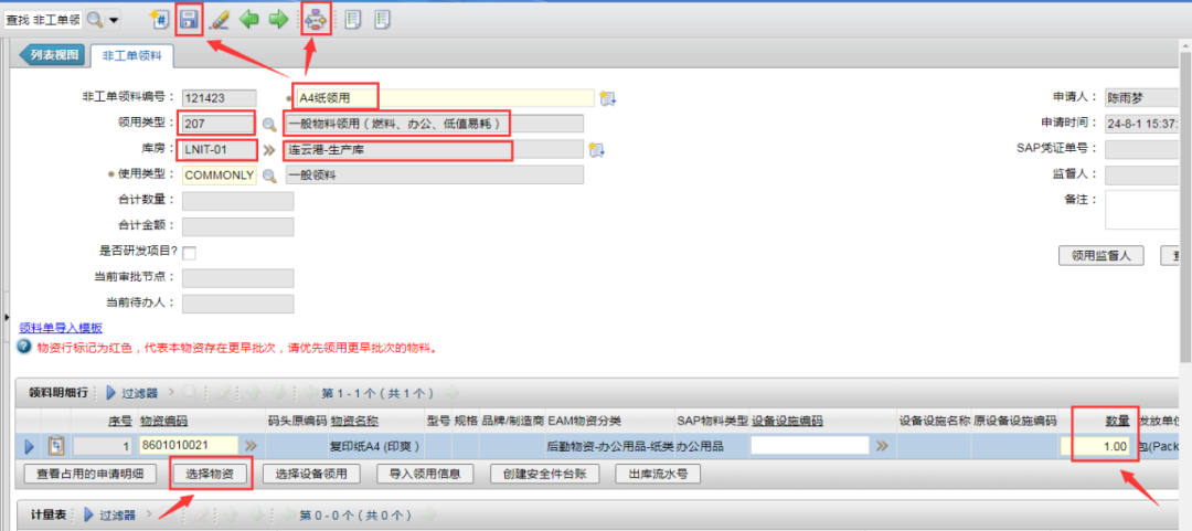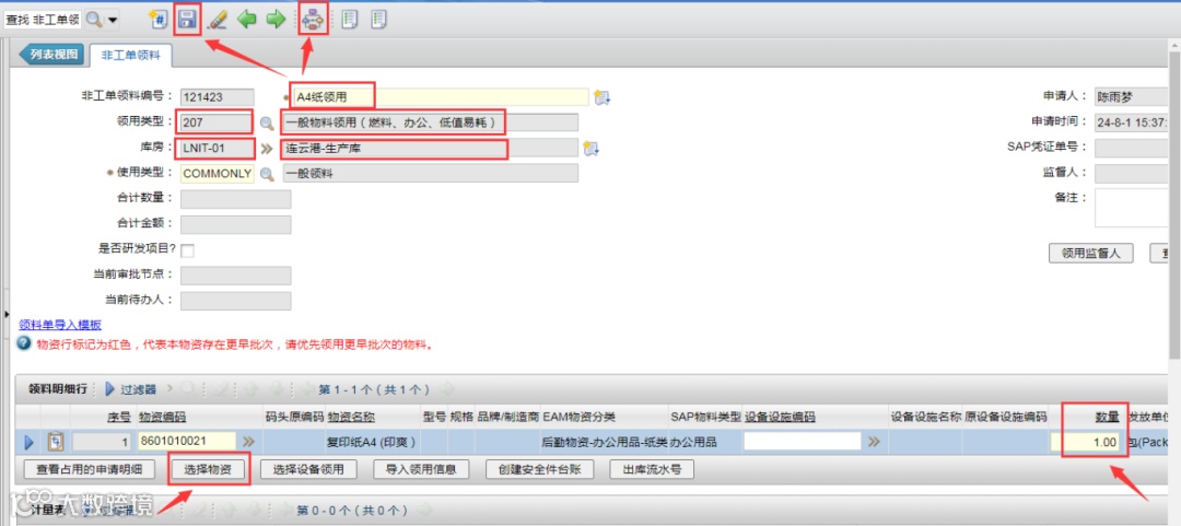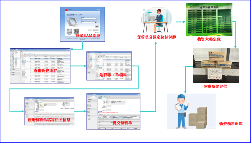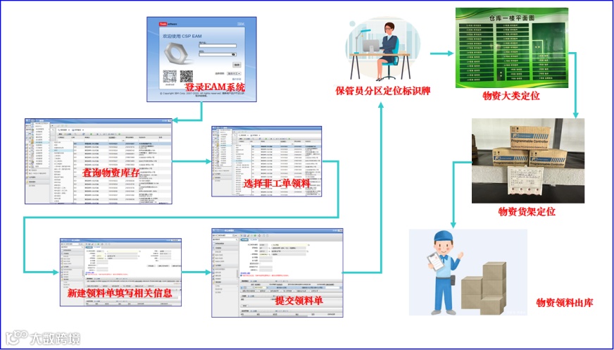 看如下流程,熟悉如何通过EAM系统领取所需物资。