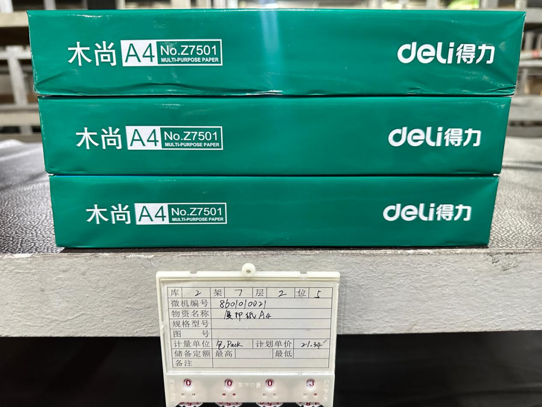 8、保管员查看物资标识牌,核对名称数量无误后,领料人即可签字领取A4复印纸。