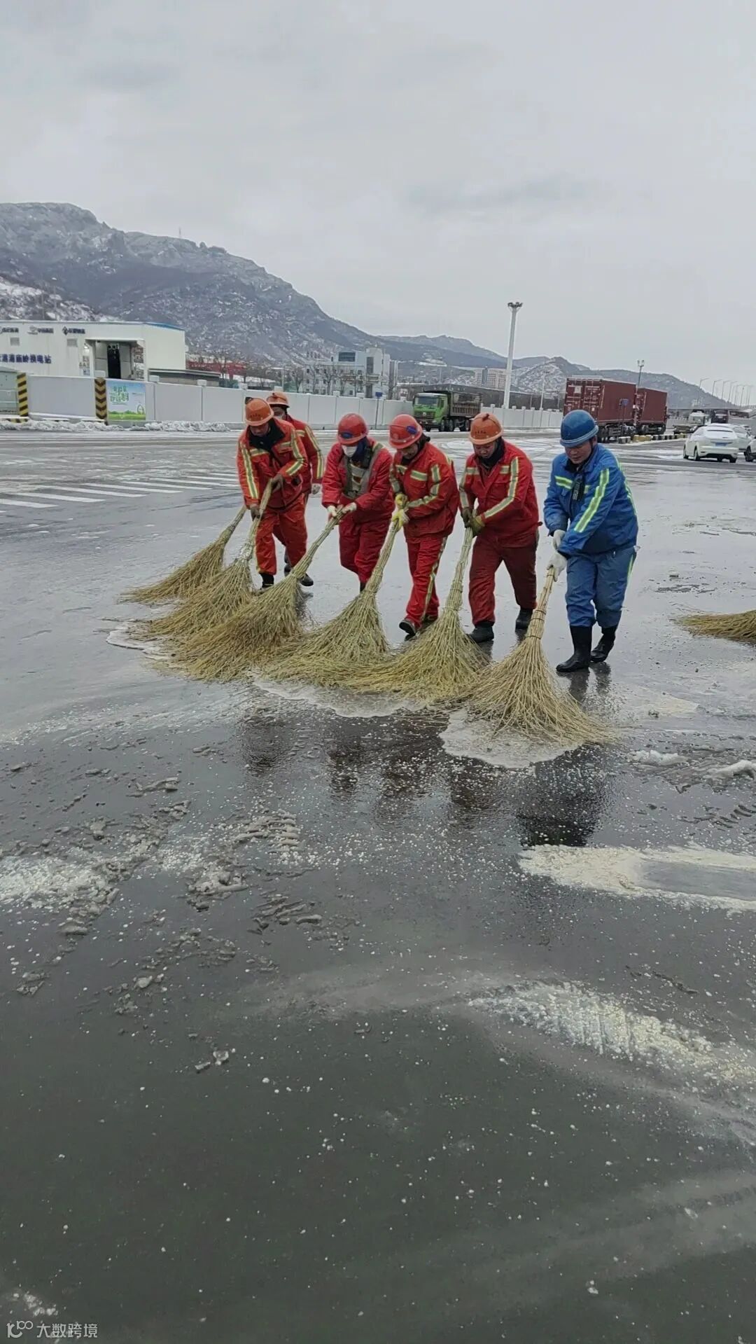 上午生产会上,公司领导对扫雪除冰工作进行了总体部署,各部门迅速响应,在保证日常生产正常进行的前提下,立即组织开展扫雪除冰工作。大家带着铁锹、扫帚等工具赶赴分包路段,你扫雪、我铲冰、他撒融雪剂,分工明确,在铲车等机械设备配合下,快速对场内交通主干道、火车道口、码头前沿等生产重点区域的积雪和冰层进行清除。