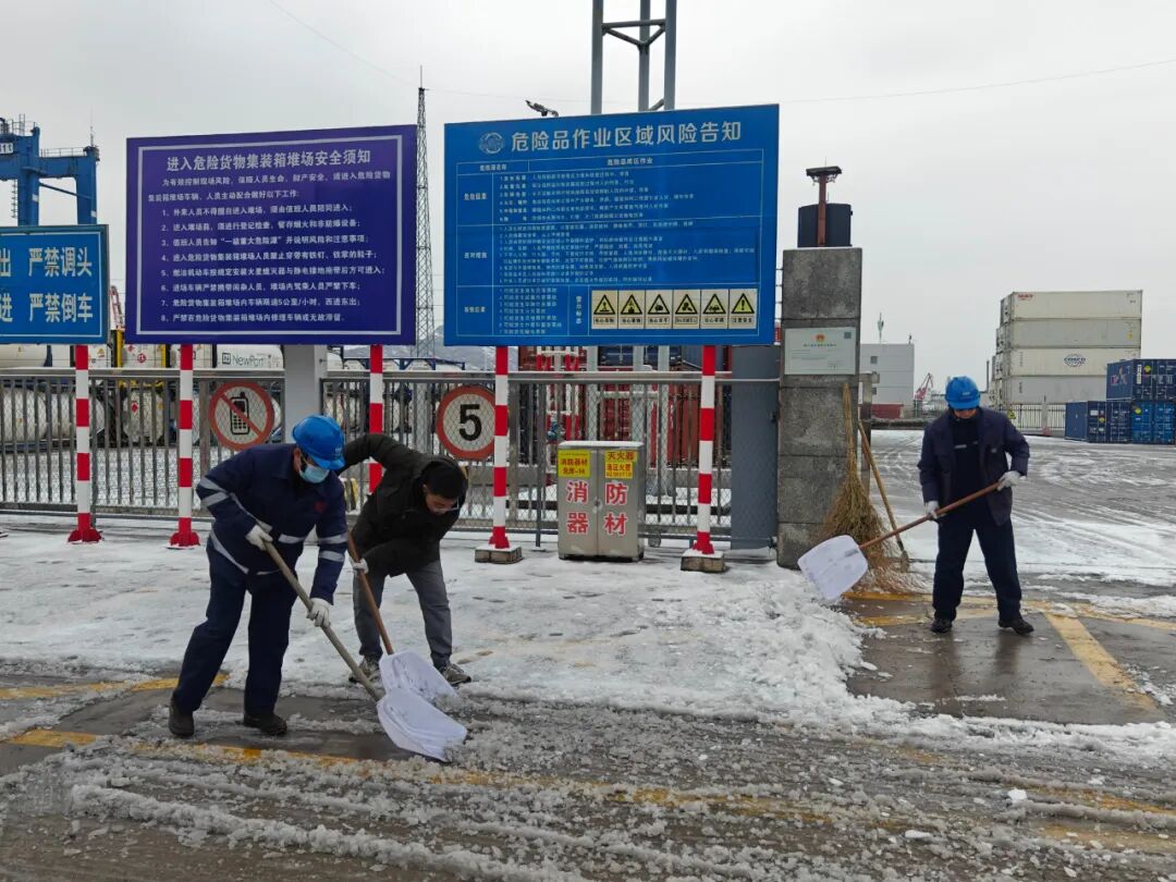 2月1日,随着一场大雪悄然降临,港城气温急剧下降。连云港货柜码头以雪为令,无畏严寒,迅速启动扫雪除冰应急预案,吹响扫雪除冰集结号,确保码头内交通畅通,保障了生产正常运行。