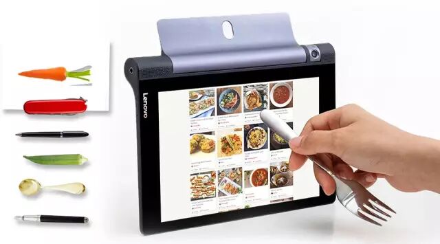 我:“不用这么麻烦呀,咱家的YOGA 平板 3 Pro有悬挂模式,我帮你把菜谱存好,做饭的时候挂在厨房,抬头就能看到了。”