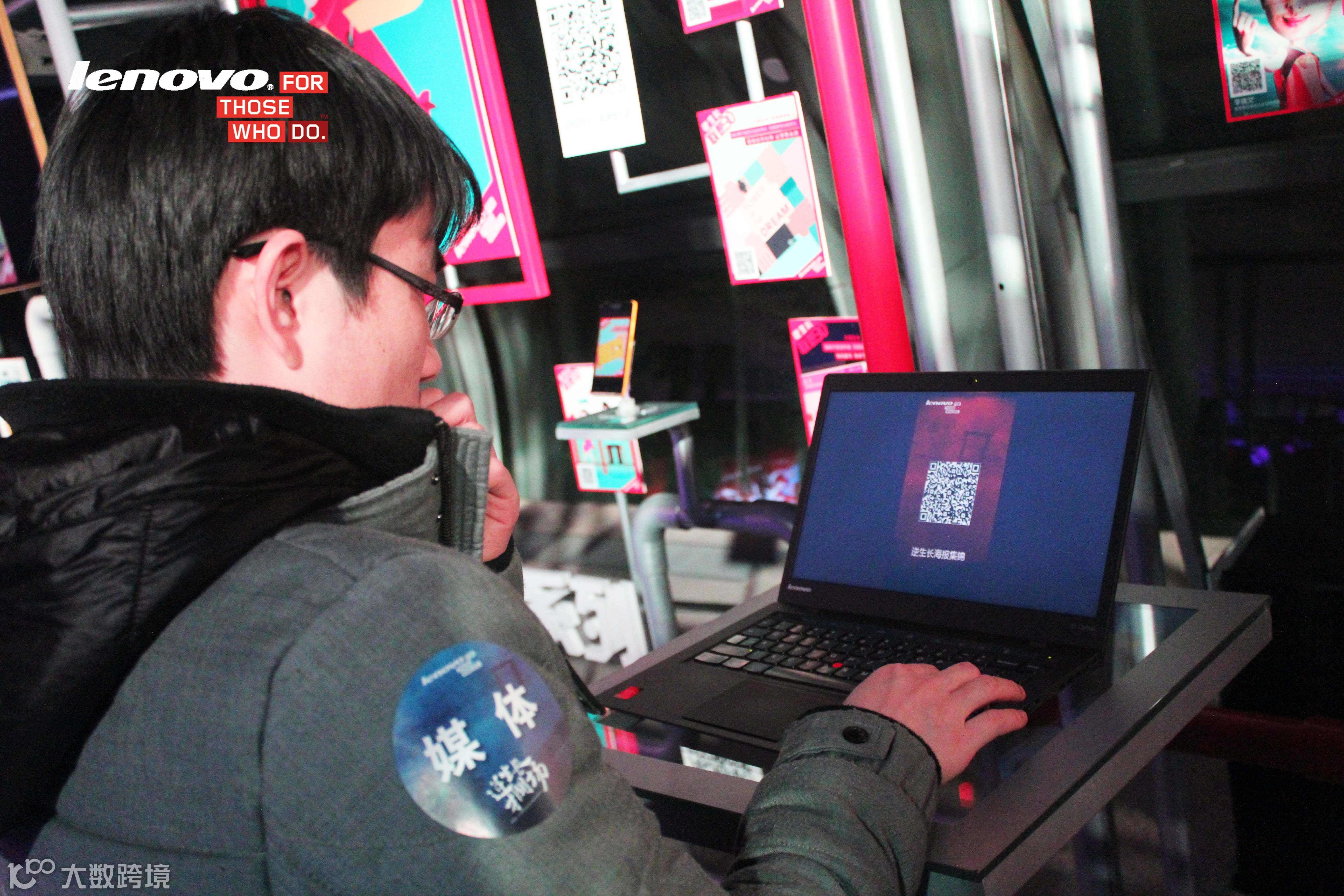快看!会展一角有小伙伴在用想哥家的笔记本看逆生长视频呢。