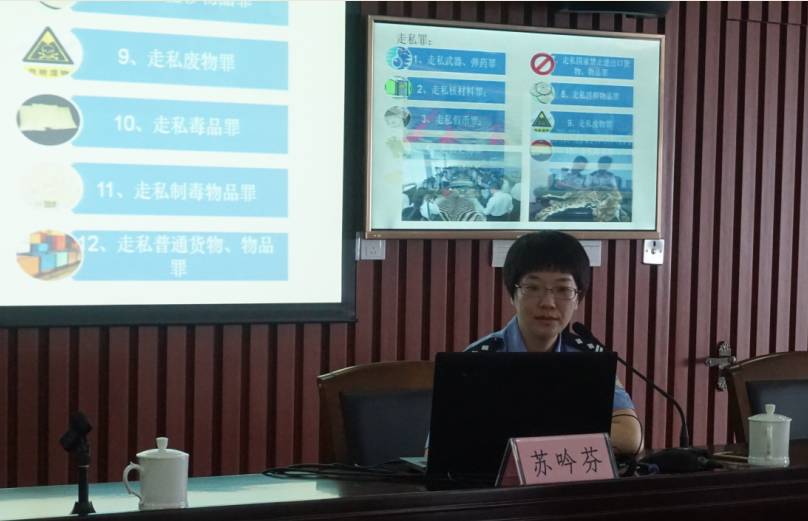紧接着,本次宣讲会正式开讲了!苏科长为大家详细介绍了缉私执法工作。从缉私局的成立,到缉私工作的主要职能,并以实际图片、文字资料以及真实的案例向在座企业详细解读了海关行政处罚和走私犯罪侦查两项执法工作。在座企业高管认真听取苏科长理论结合实际的宣讲,提高了进出口业务的法制意识,风险意识。会场氛围有序而热烈。
