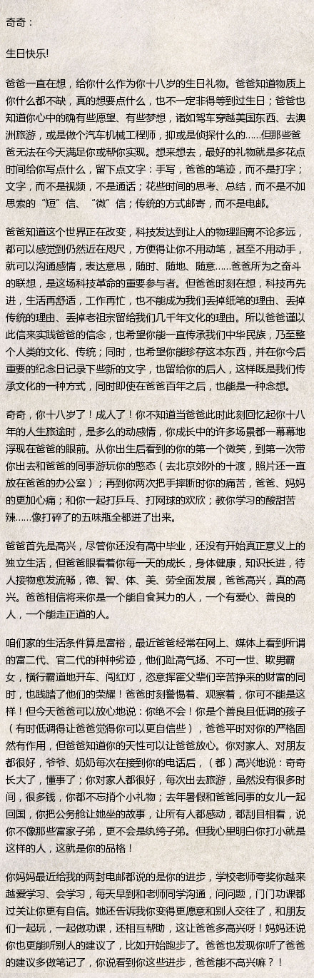 本少今天要跟大家分享一位父亲写给18岁儿子的家书,