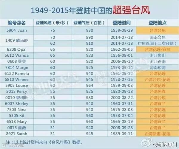 @中国天气说,1949年至今,台湾已经为胡建挡了67个台风!人类有爱的抱抱,台风对胡建有“爱的挡挡”。有台湾护体,先登陆台湾后登陆福建的台风,平均强度会降两级。
