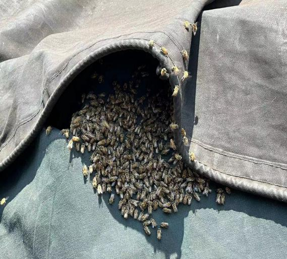 6月6日下午,操作部货运站在巡查时发现A场地有多处货垛篷布下聚集大量马蜂,严重影响工人作业安全。