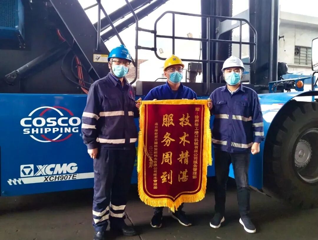 近日,新东方国际货柜公司赠予徐工港机一面锦旗,以表达公司与徐工“共建清洁美丽世界”绿色低碳能源的高度认可。