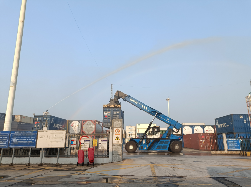 与此同时,新东方国际货柜公司加大对清洁能源设备设施的投入和使用,引进纯电动堆高机、叉车、巡逻车、消防车以及LNG集装箱牵引车等新能源车辆。