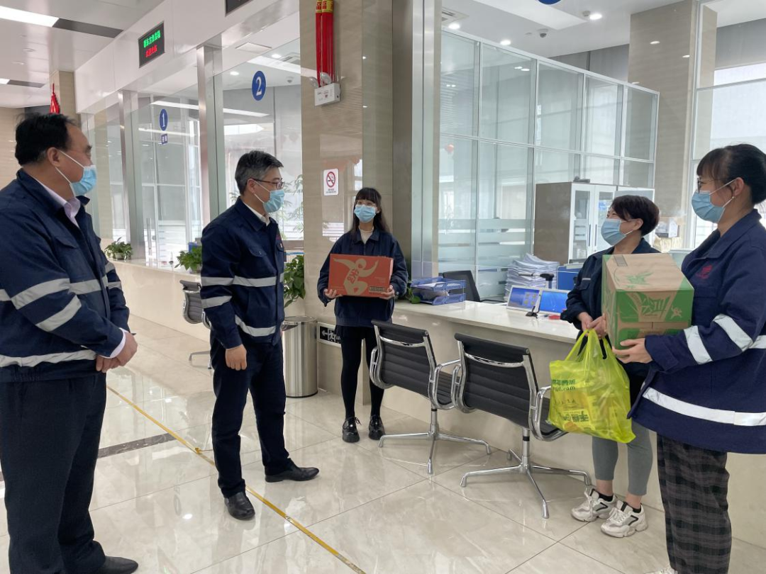 公司党委书记何浩首先来到码头维修车间,与一线工人亲切交流,详细询问工作人员的工作、生活状况,并提前预祝大家节日快乐,随后向劳动者们送去慰问品,感谢他们的辛勤付出。随后何浩书记来到客服中心,看望坚守岗位工作人员,送去公司党委的关怀和慰问品。