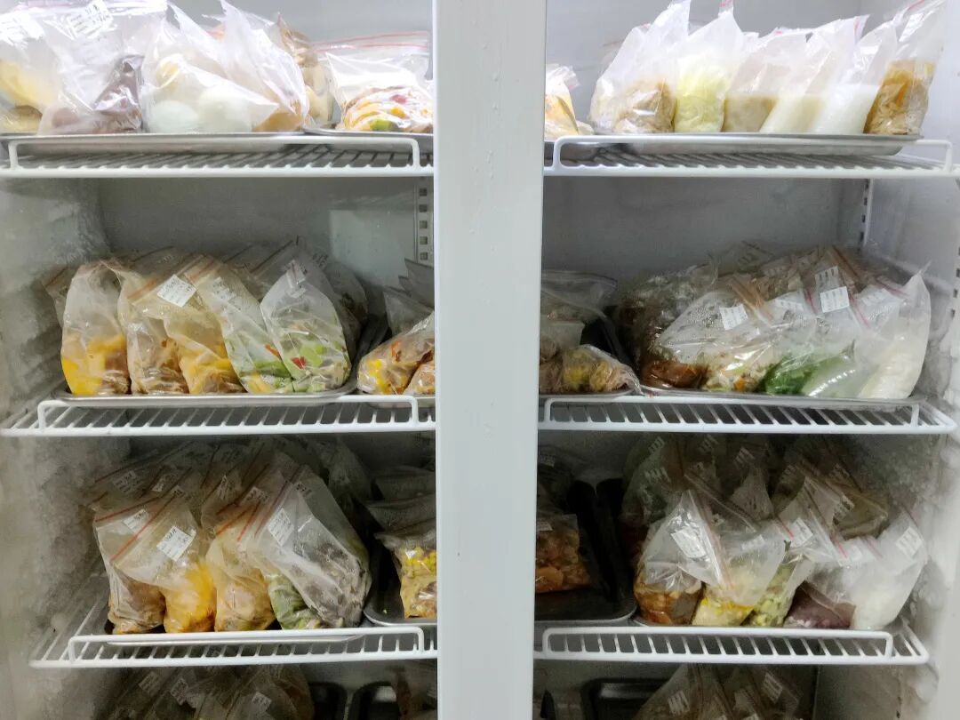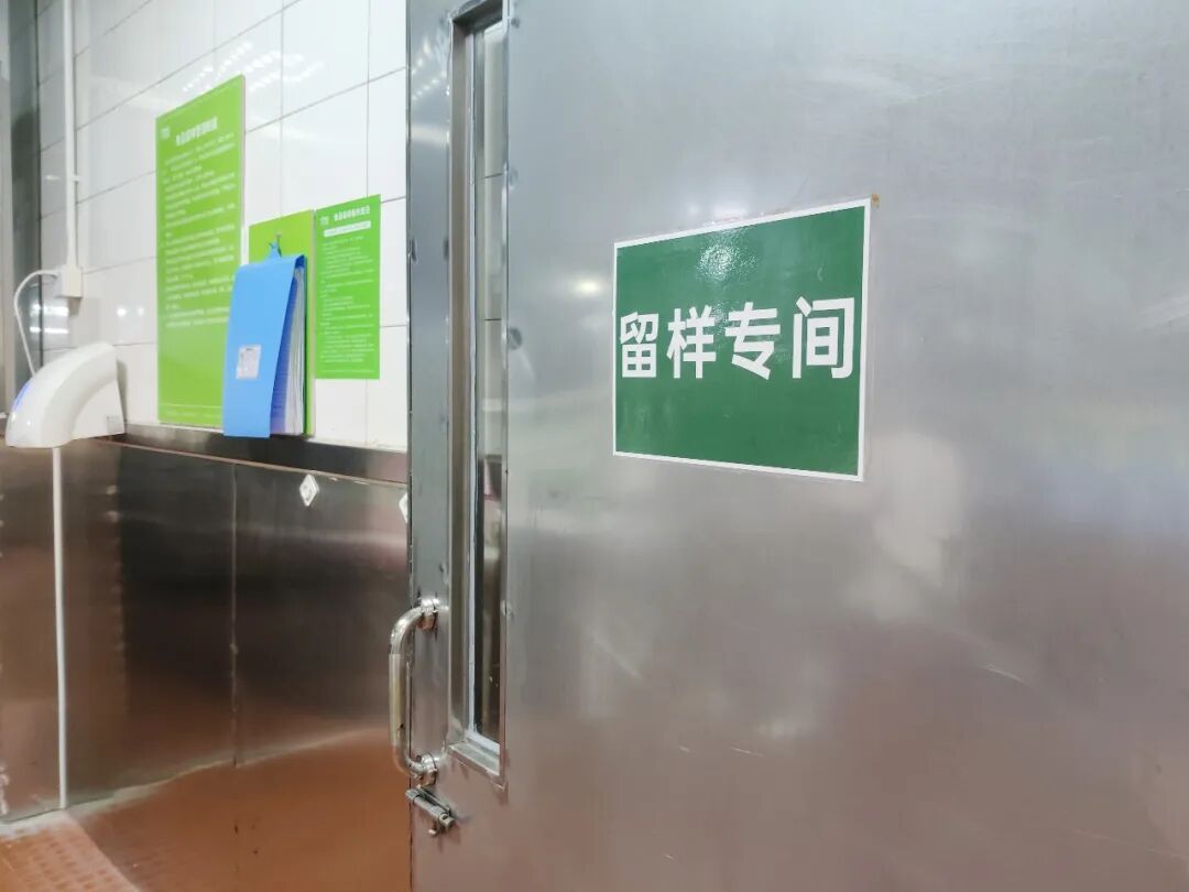 在员工用餐前,留样是必备流程,每道菜会有自己的专属标签,贴好标签后再放置于留样专用柜中,方便食品安全追溯。