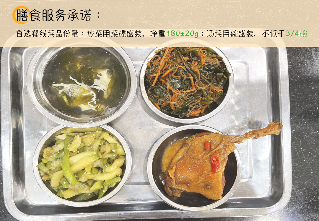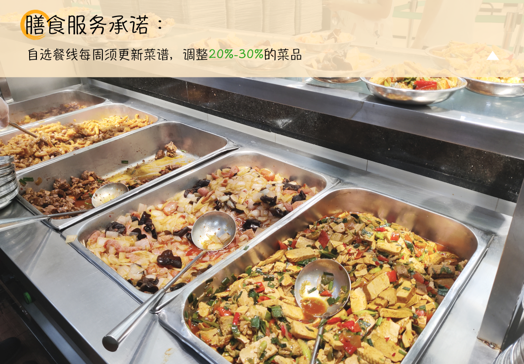 为了给大家换口味,每周自选餐线会更新菜谱,具体菜色可每周一去膳食服务台查看。