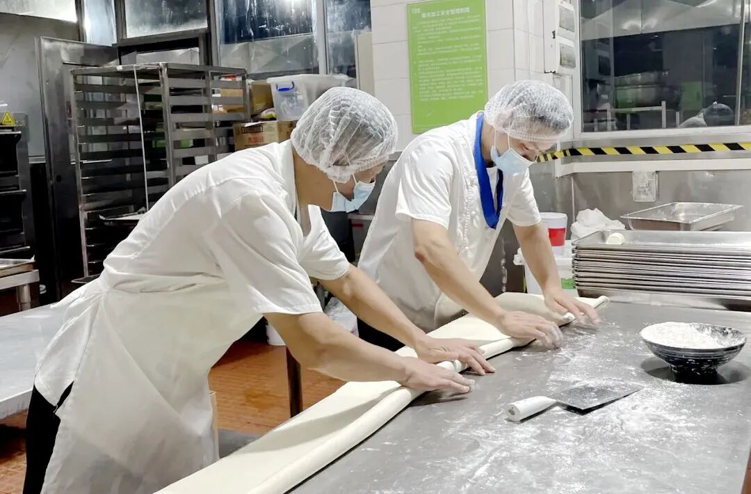 夜深静谧的长安工业园区内,食堂后厨灯火通明。