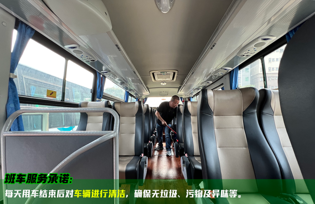同时定期也会对班车进行一次精细化清理,包括空调滤网清洗、内置座椅擦洗等。以及至少每月一次的车辆消杀。