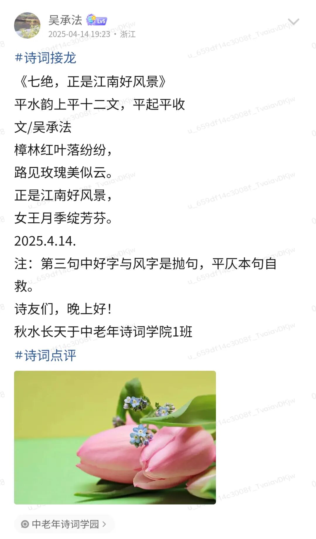 源远流长的经典诗歌,是历史长河中经久不衰的瑰宝,散发文学的芳香。诗词天地会员圈不仅有接诗活动,每周还有飞花令、看图题诗等活动,想和万千诗友一起交流进步吗?