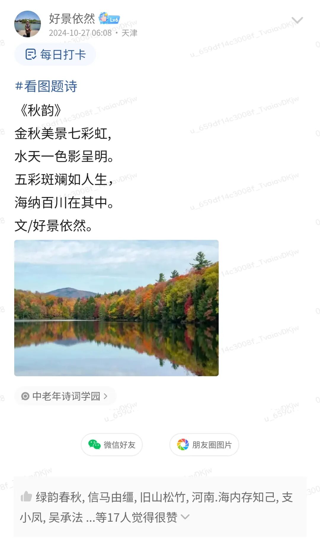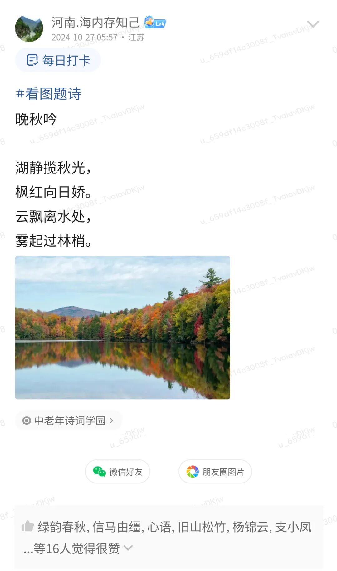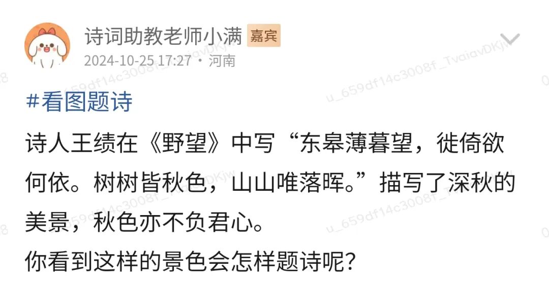 为了让诗友们的笔下带点诗意,诗词天地会员圈每周都会有“看图题诗”活动,找一张充满诗意的图片,来进行一些诗意的创作。