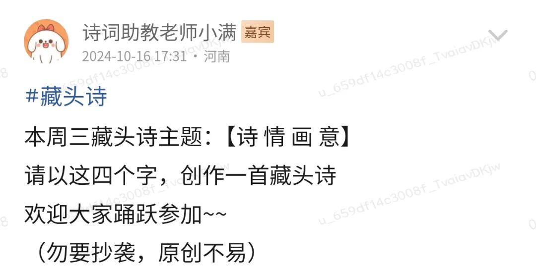 如果你对本期活动感兴趣,快把你的诗词发出来,写一首藏头诗。