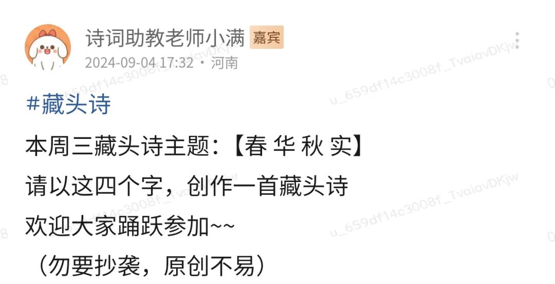 如果你对本期活动感兴趣,快把你的诗词发出来,写一首藏头诗。