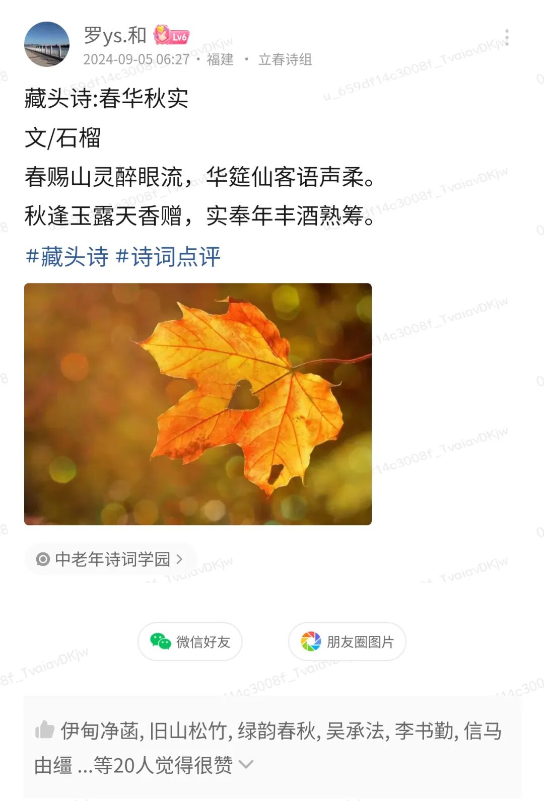 本期的“藏头诗”活动一发出,就有众多诗友参与,作出很多高质量诗词,一起去看看。