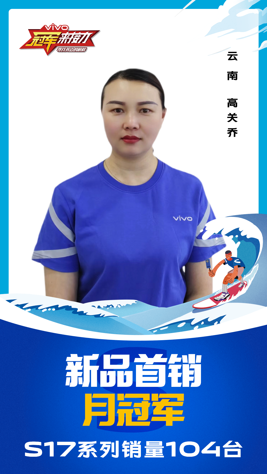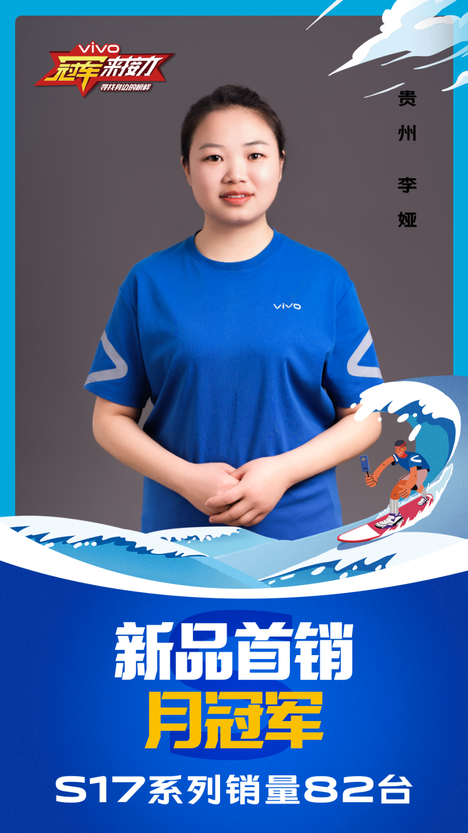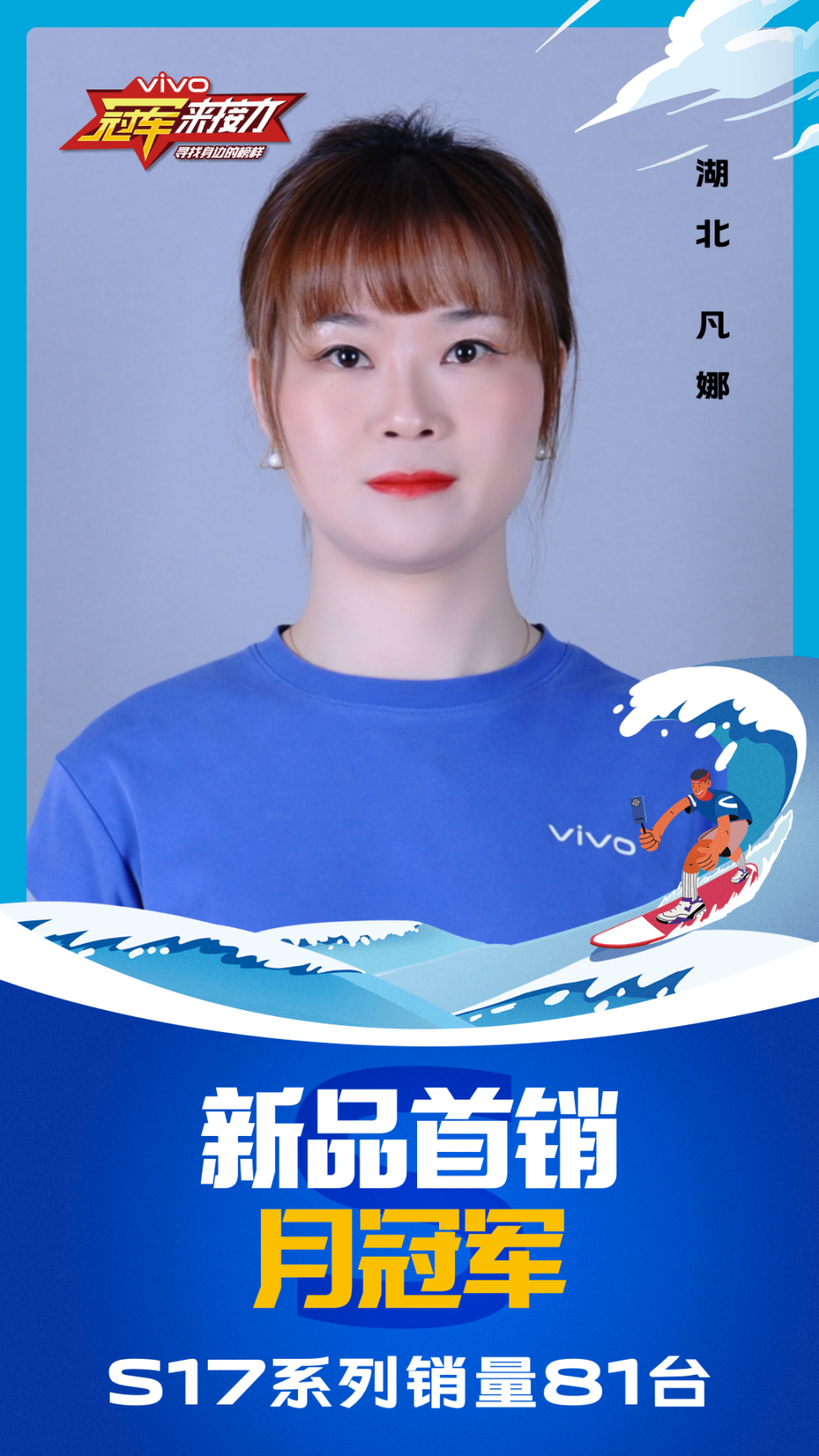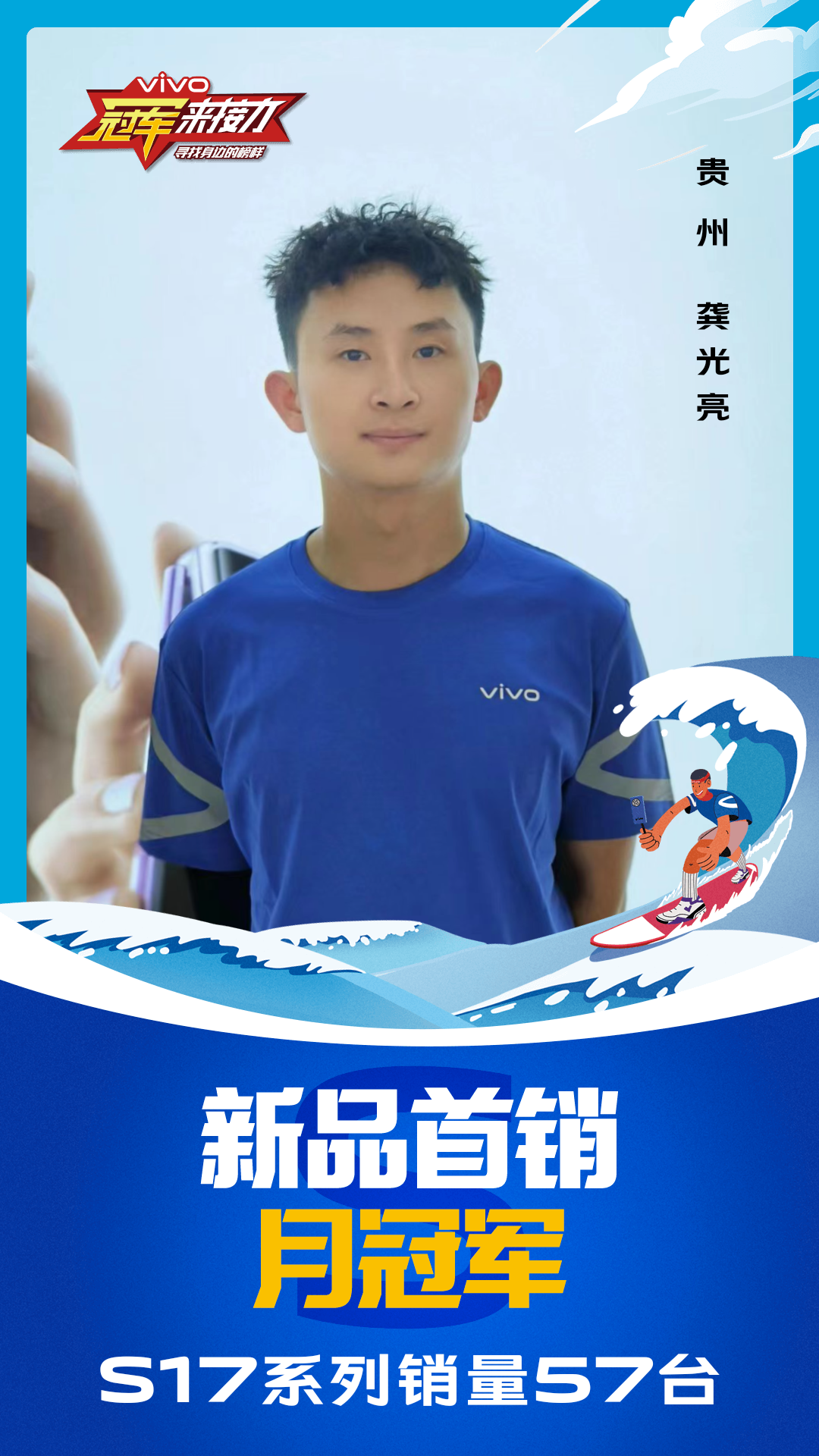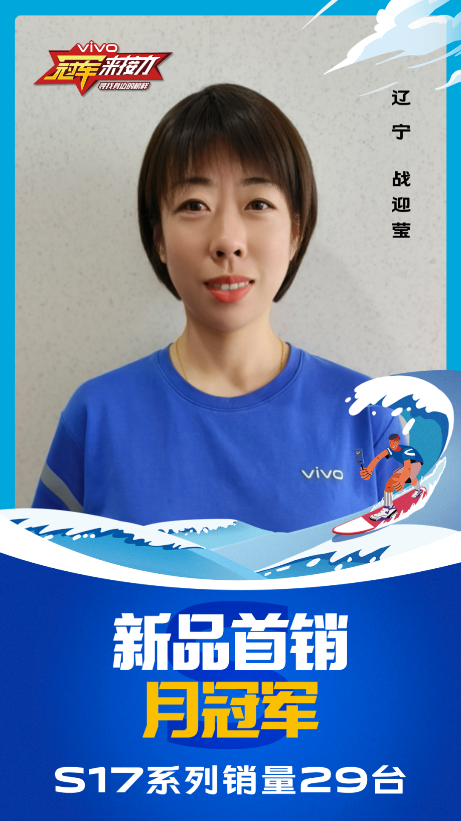 柔光知冷暖,照亮冠军路!6月至7月,vivo S17系列全国热销,在经过为期一个月的激烈比拼后,S17系列首销月冠军正式揭榜,其中单人最高月销151台!让我们看看优秀的他们都是谁?
