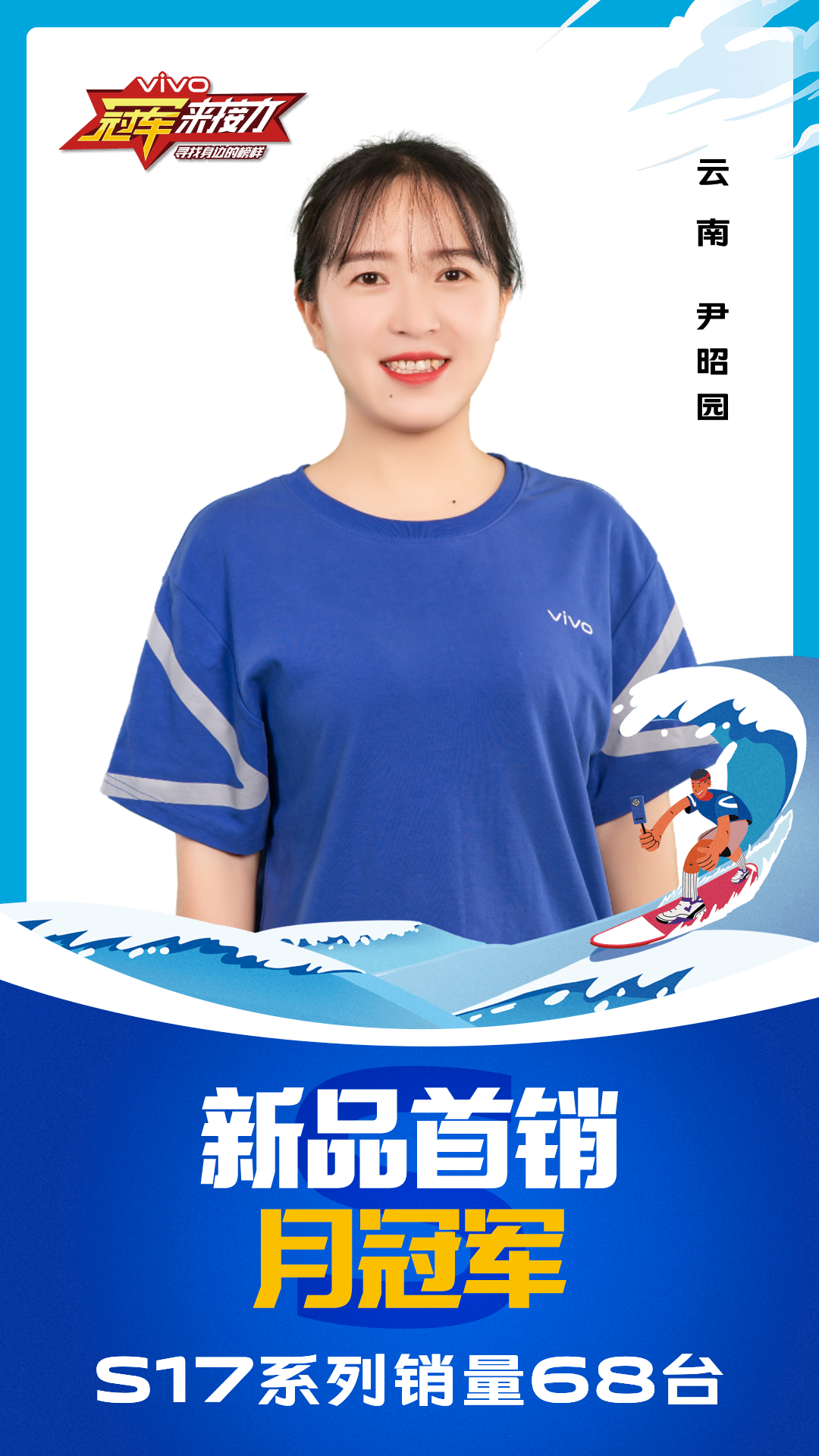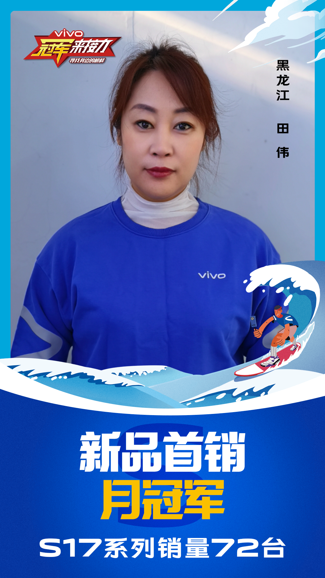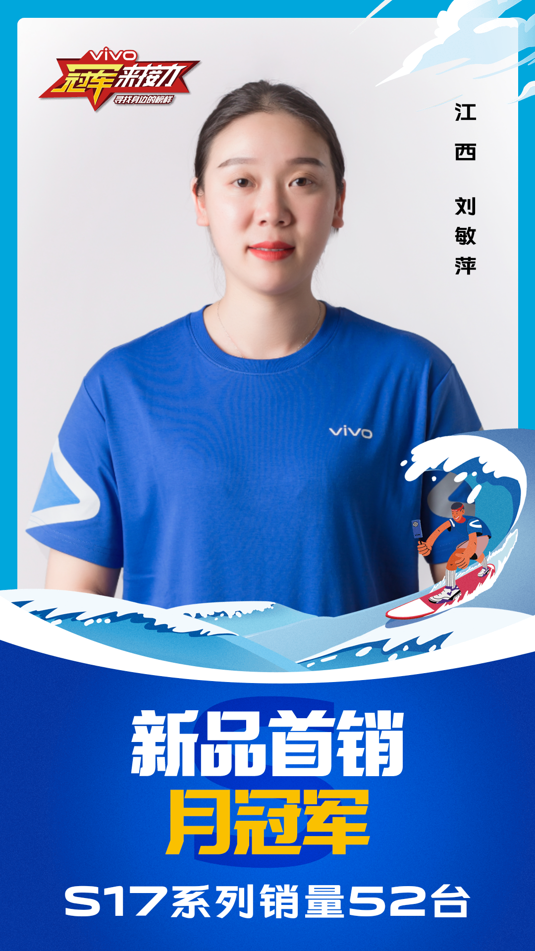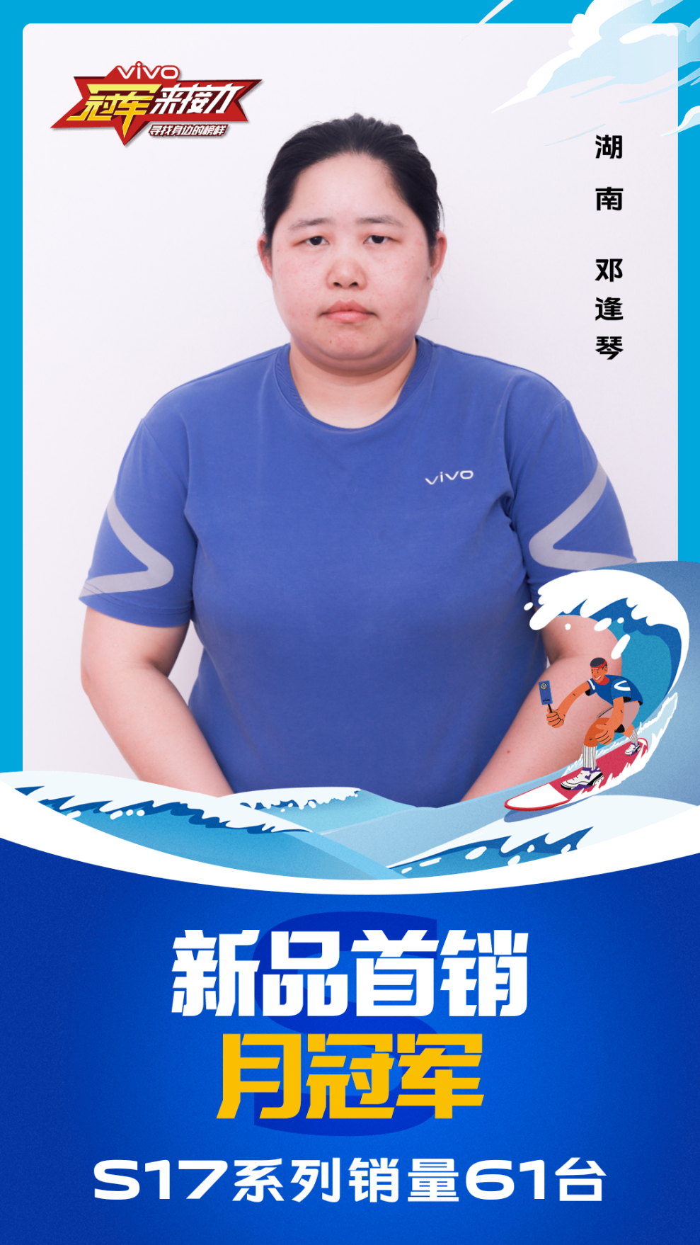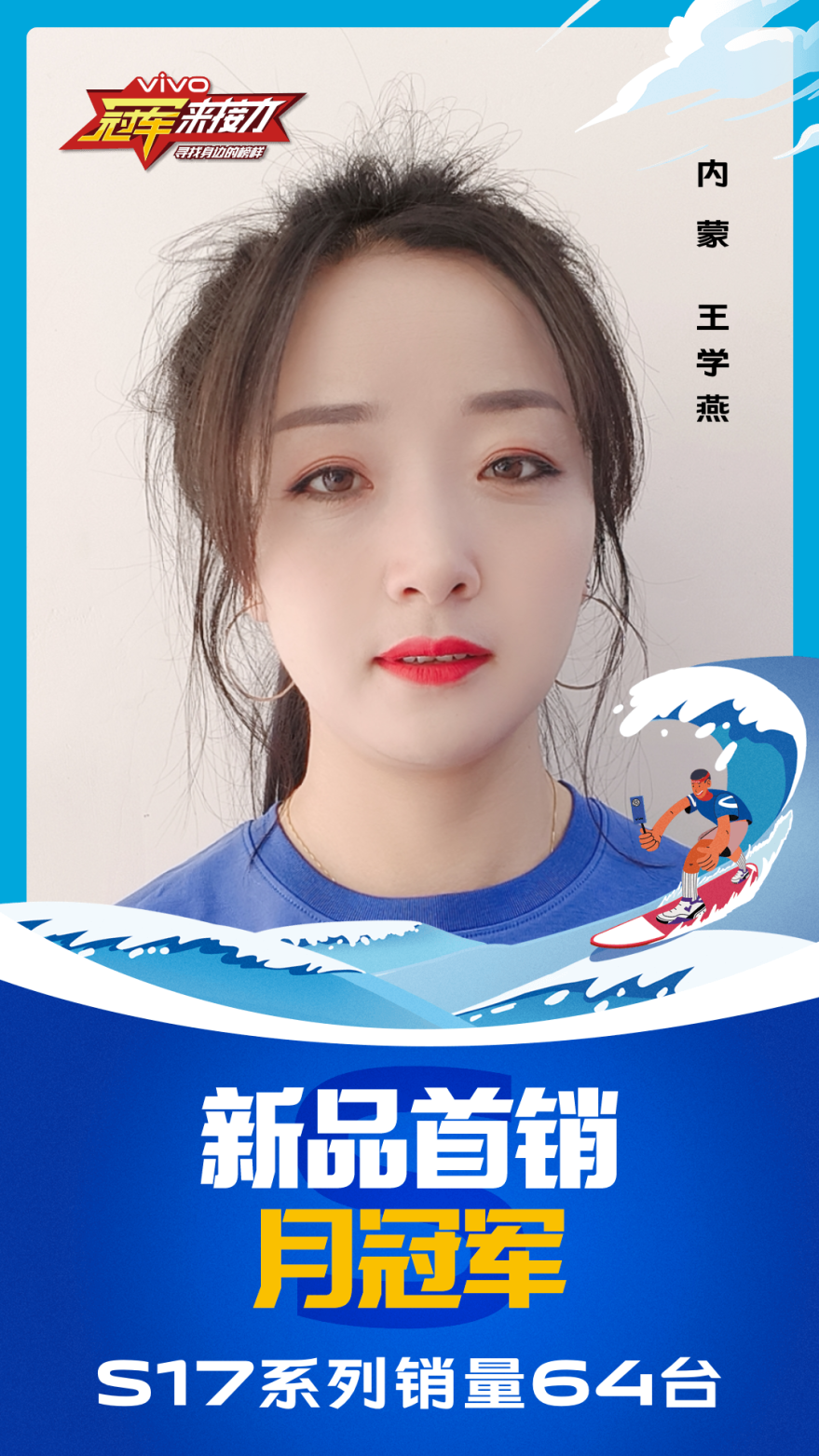 柔光知冷暖,照亮冠军路!6月至7月,vivo S17系列全国热销,在经过为期一个月的激烈比拼后,S17系列首销月冠军正式揭榜,其中单人最高月销151台!让我们看看优秀的他们都是谁?