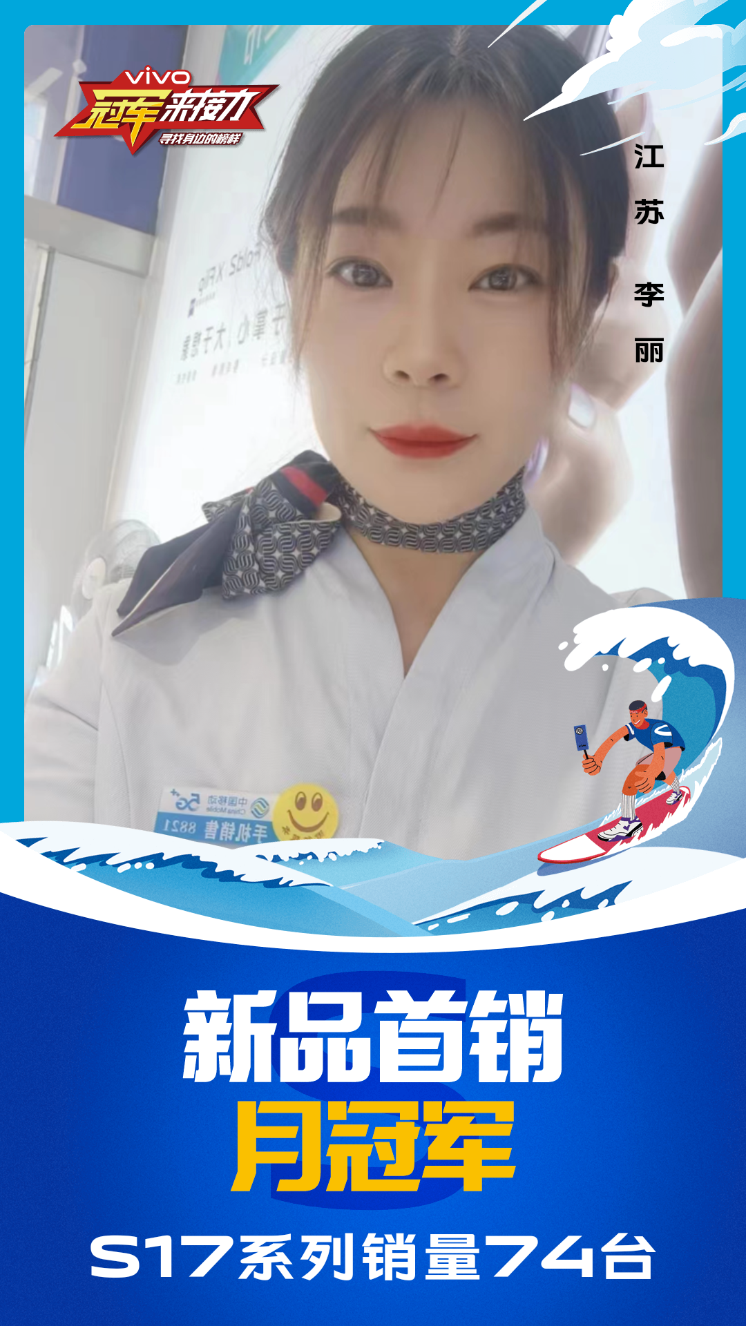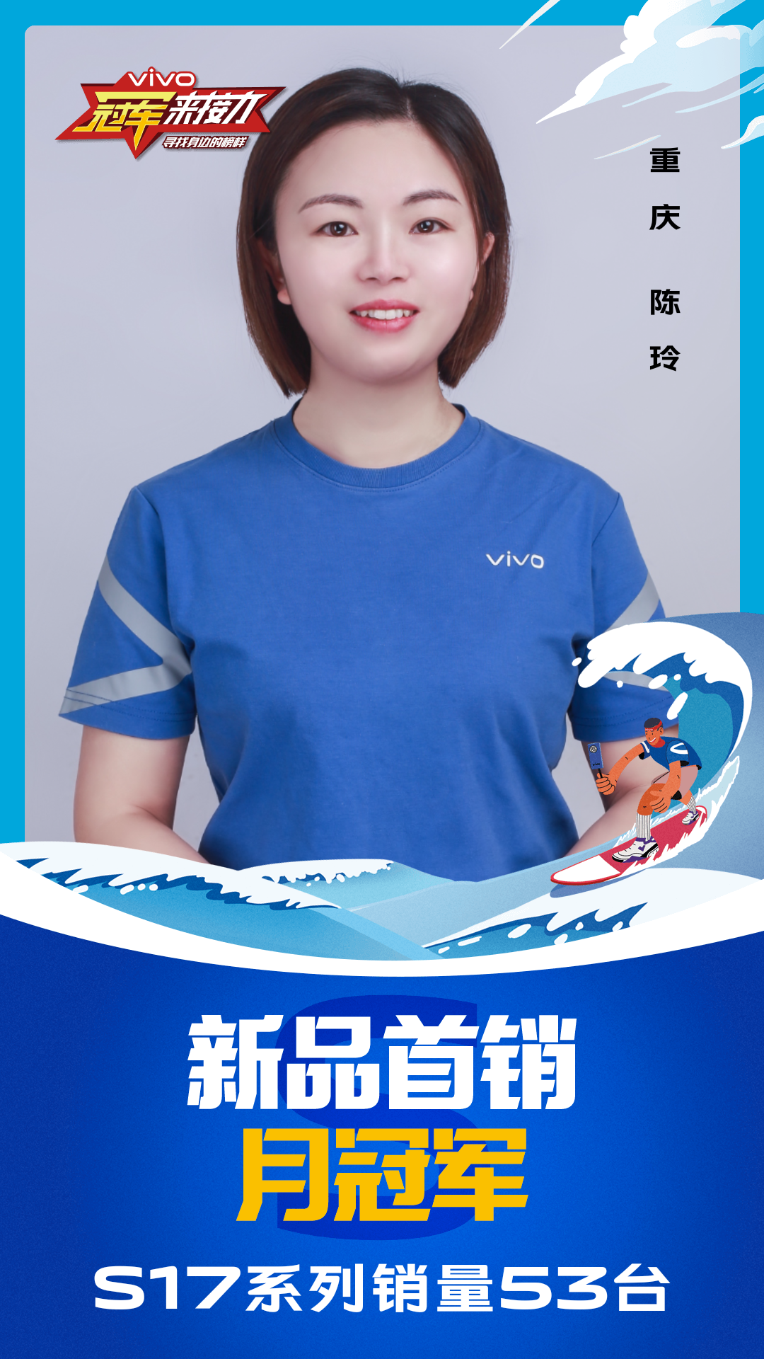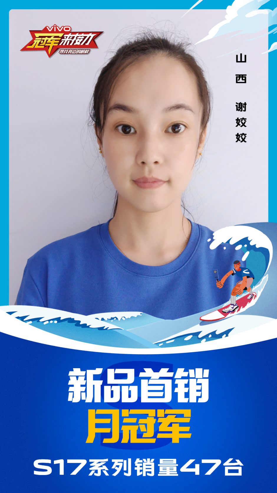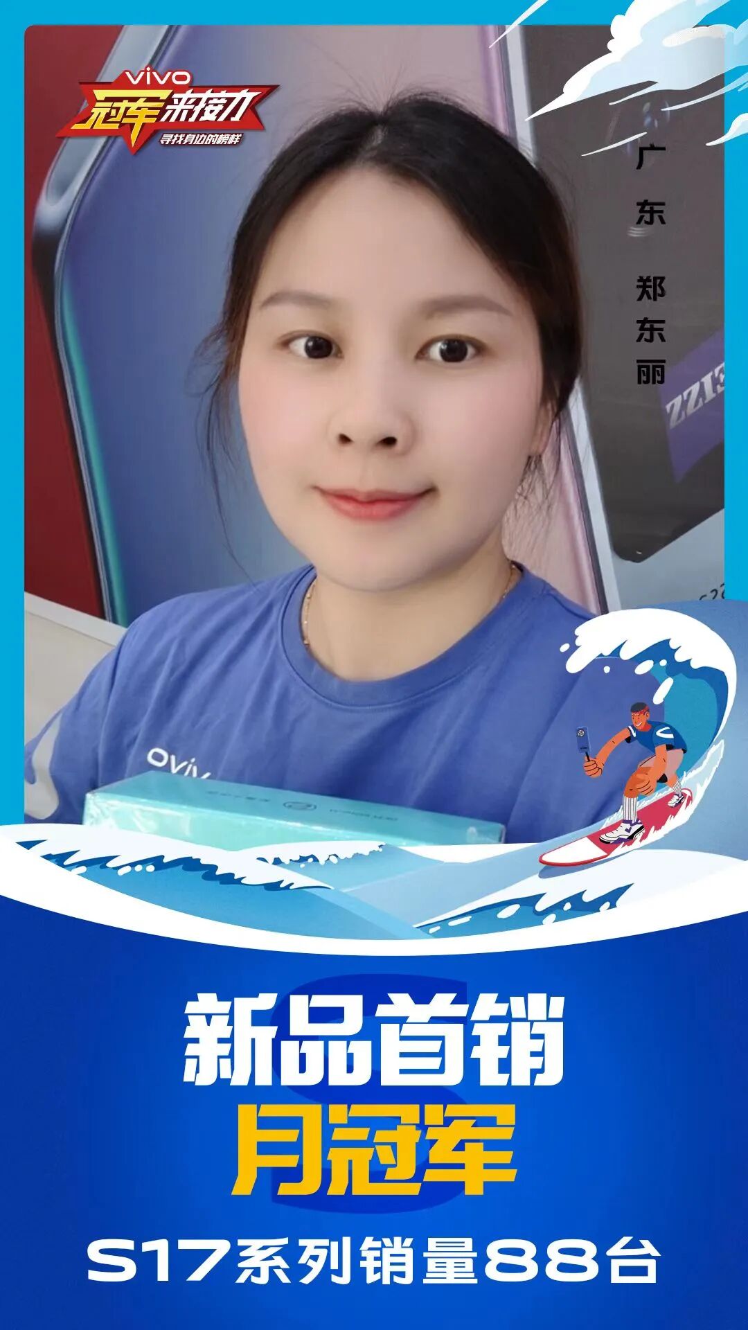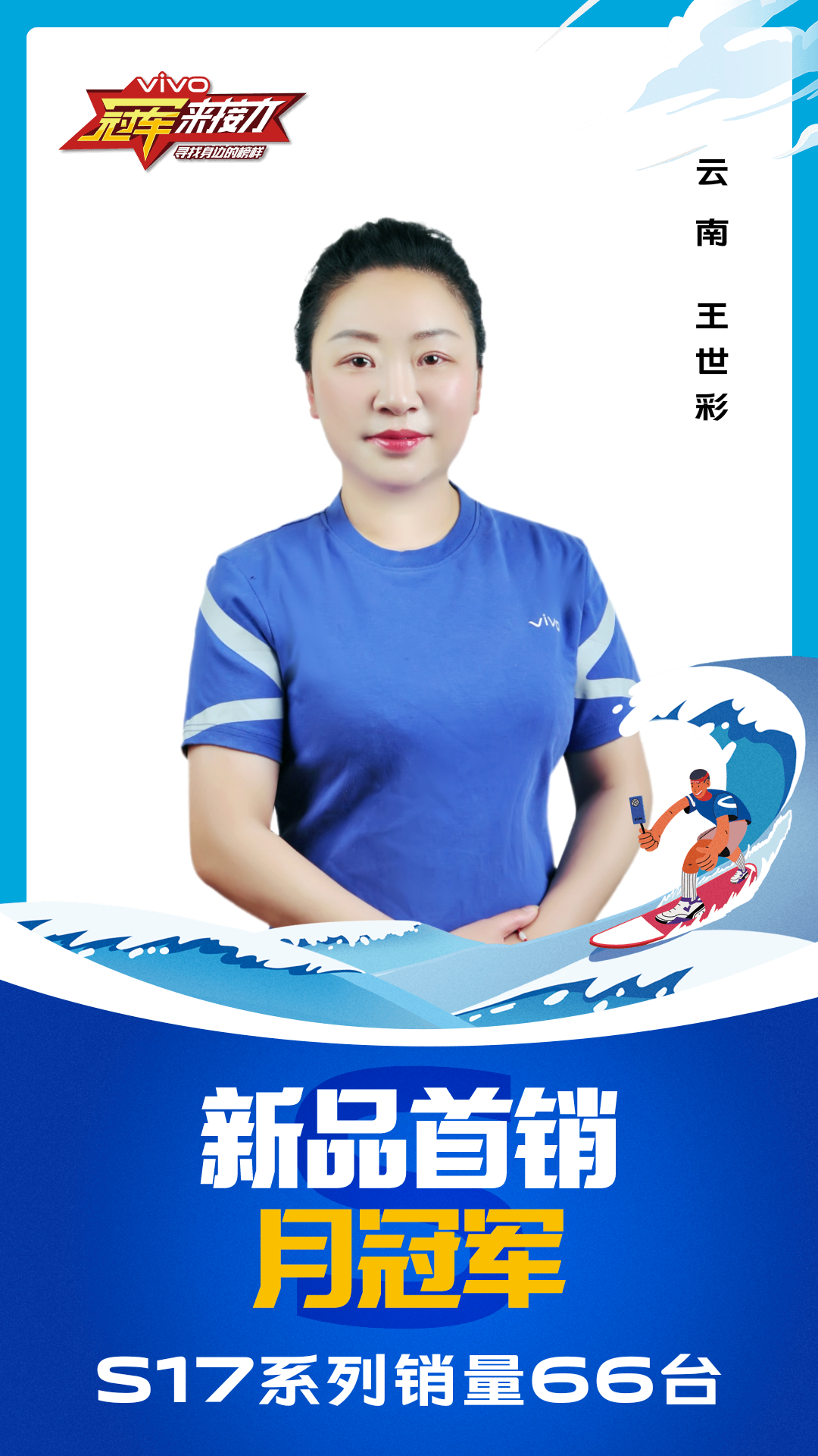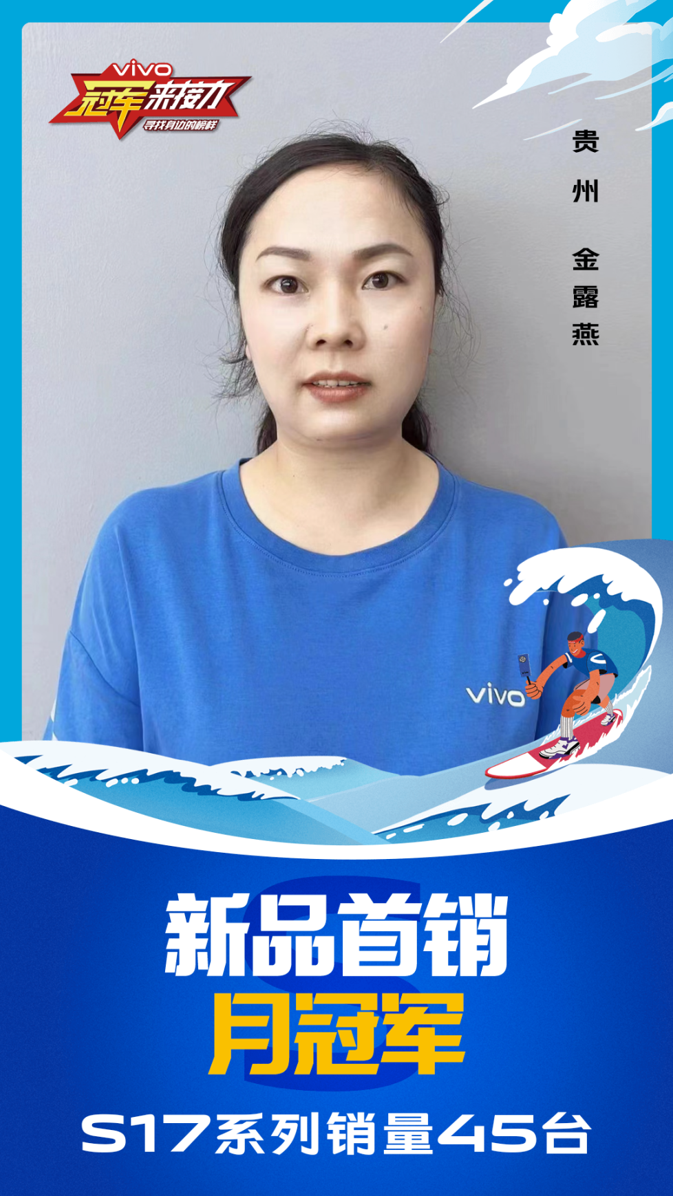 柔光知冷暖,照亮冠军路!6月至7月,vivo S17系列全国热销,在经过为期一个月的激烈比拼后,S17系列首销月冠军正式揭榜,其中单人最高月销151台!让我们看看优秀的他们都是谁?