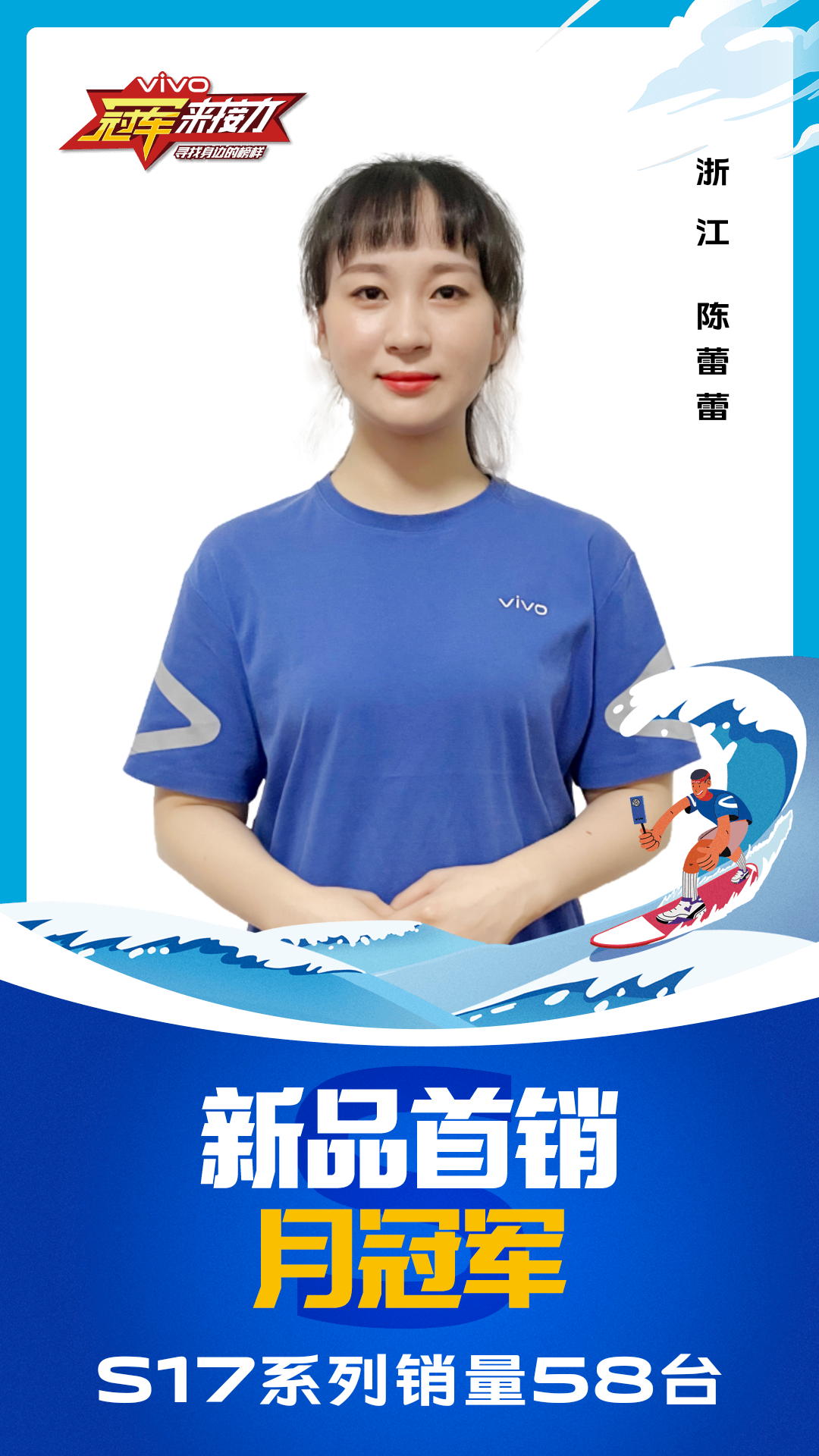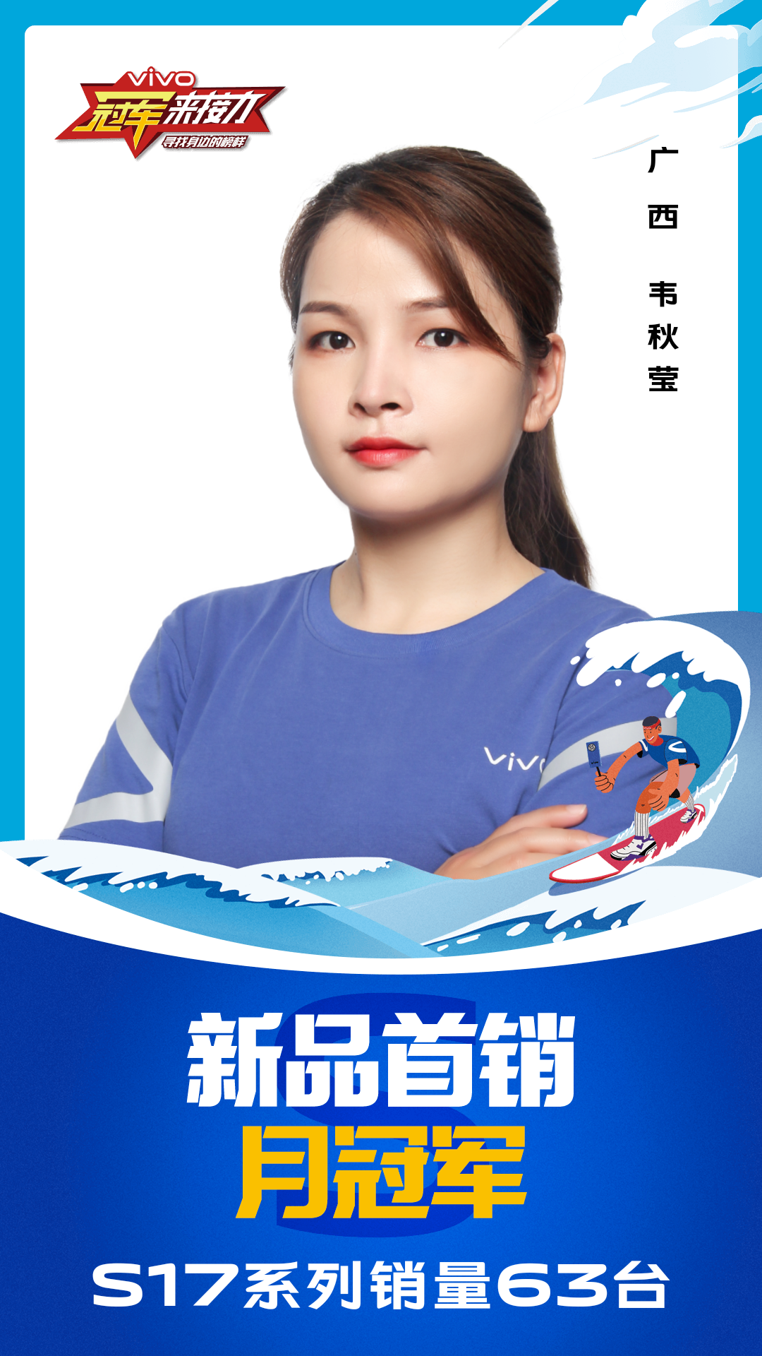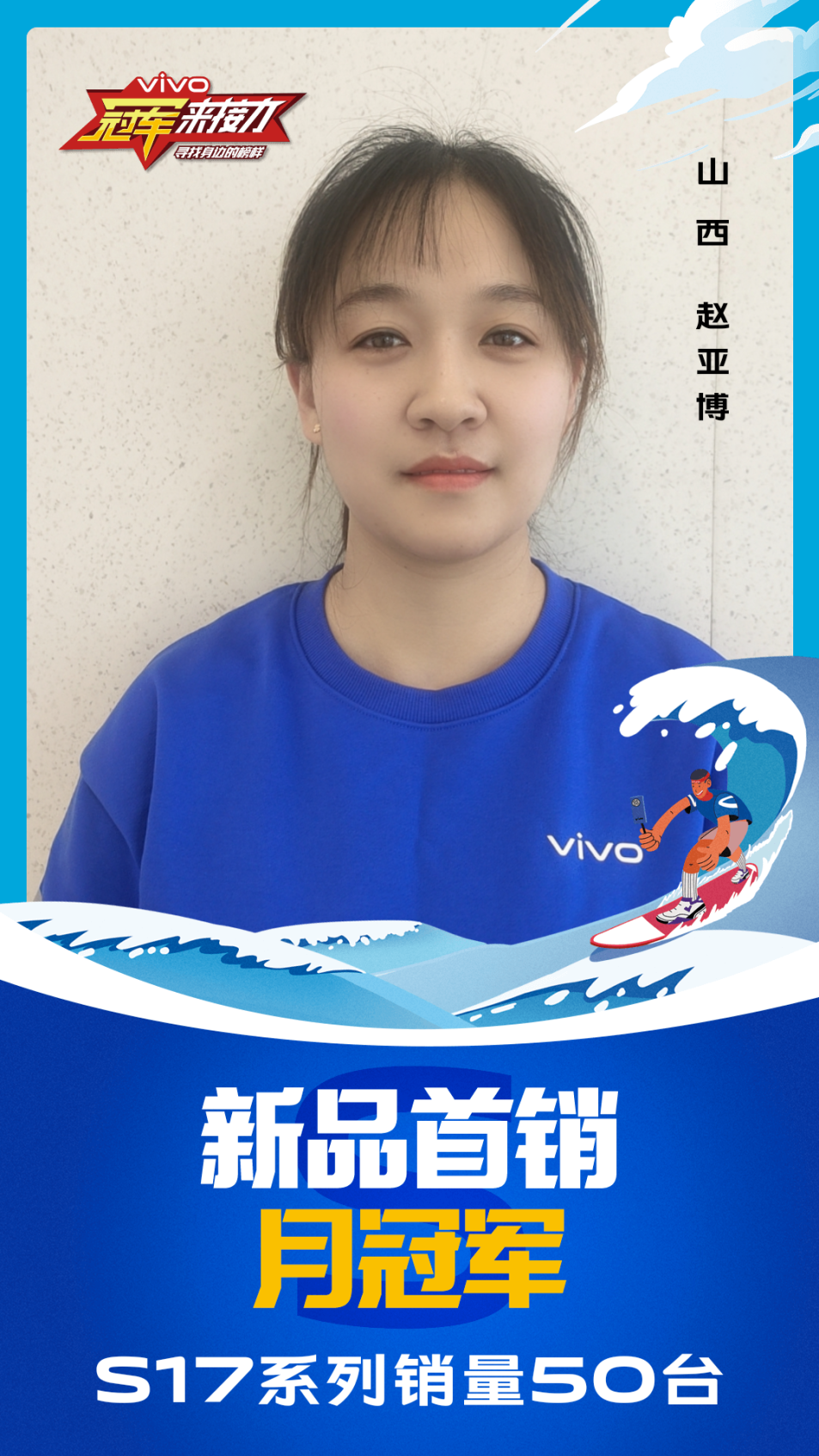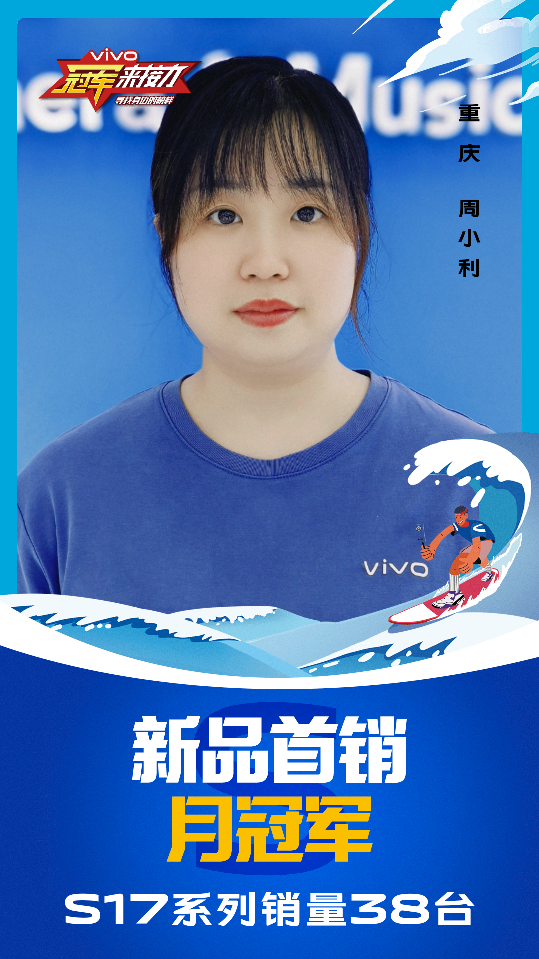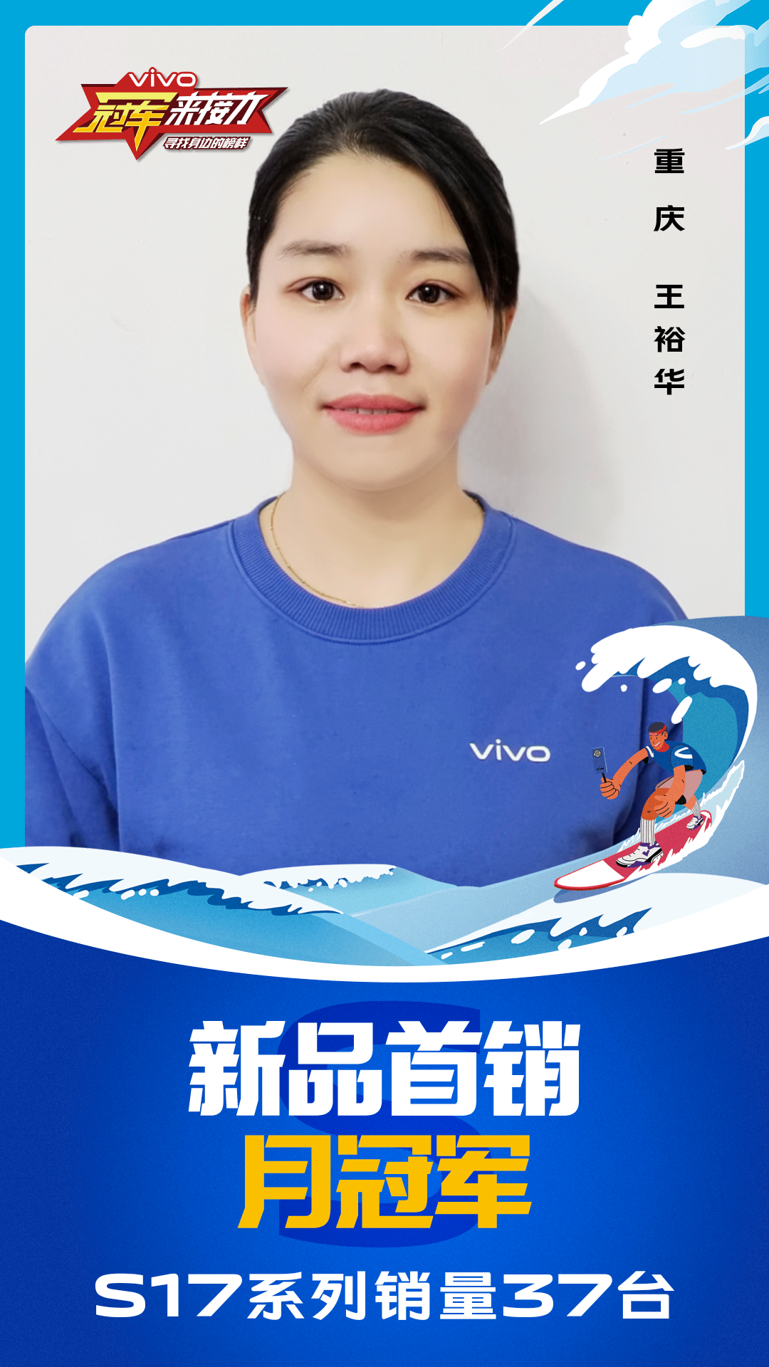 柔光知冷暖,照亮冠军路!6月至7月,vivo S17系列全国热销,在经过为期一个月的激烈比拼后,S17系列首销月冠军正式揭榜,其中单人最高月销151台!让我们看看优秀的他们都是谁?