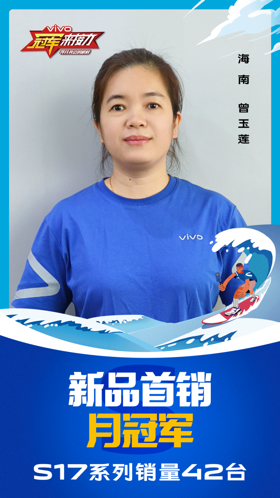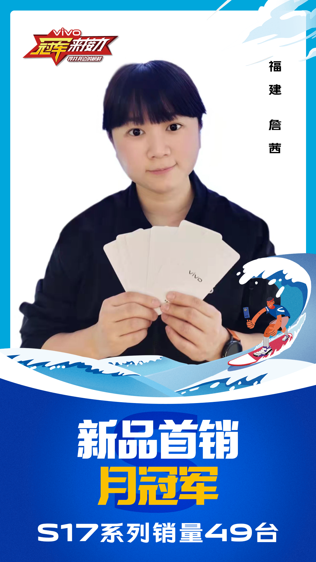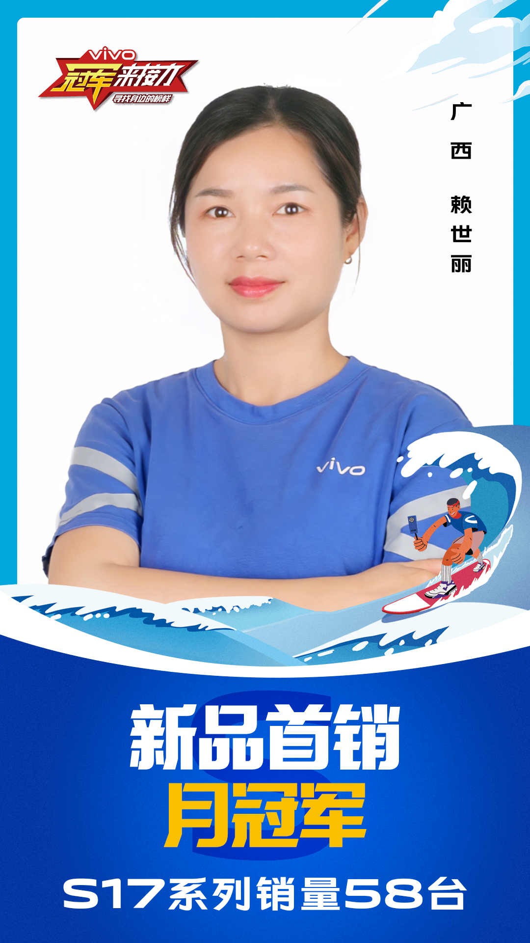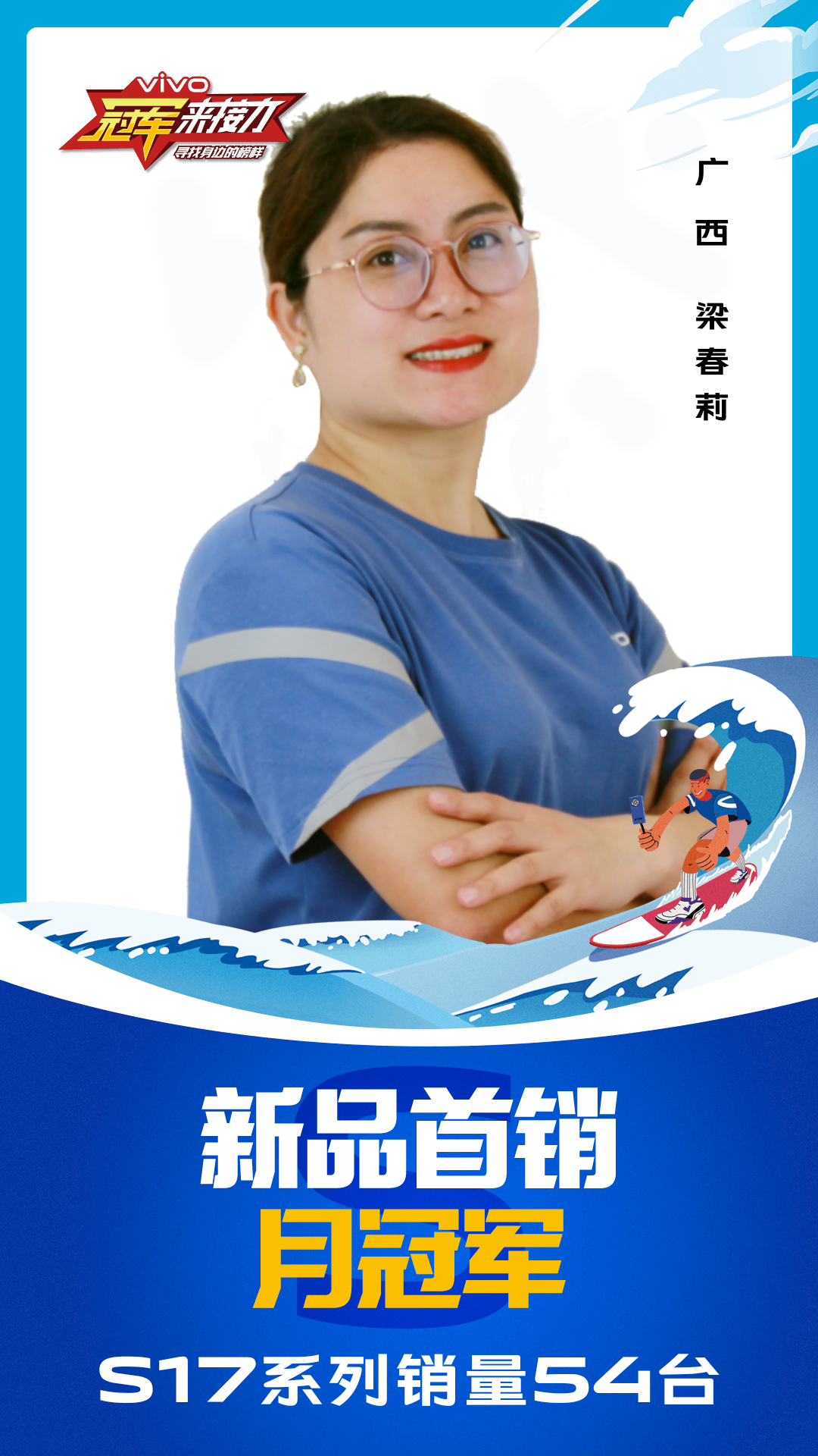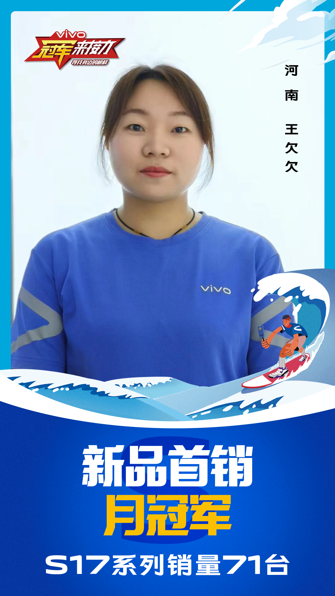 柔光知冷暖,照亮冠军路!6月至7月,vivo S17系列全国热销,在经过为期一个月的激烈比拼后,S17系列首销月冠军正式揭榜,其中单人最高月销151台!让我们看看优秀的他们都是谁?