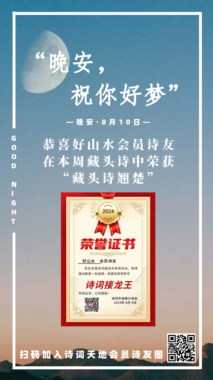 晚安海报丨恭喜好山水诗友,在本周诗词接龙中荣获“诗词接龙王”称号