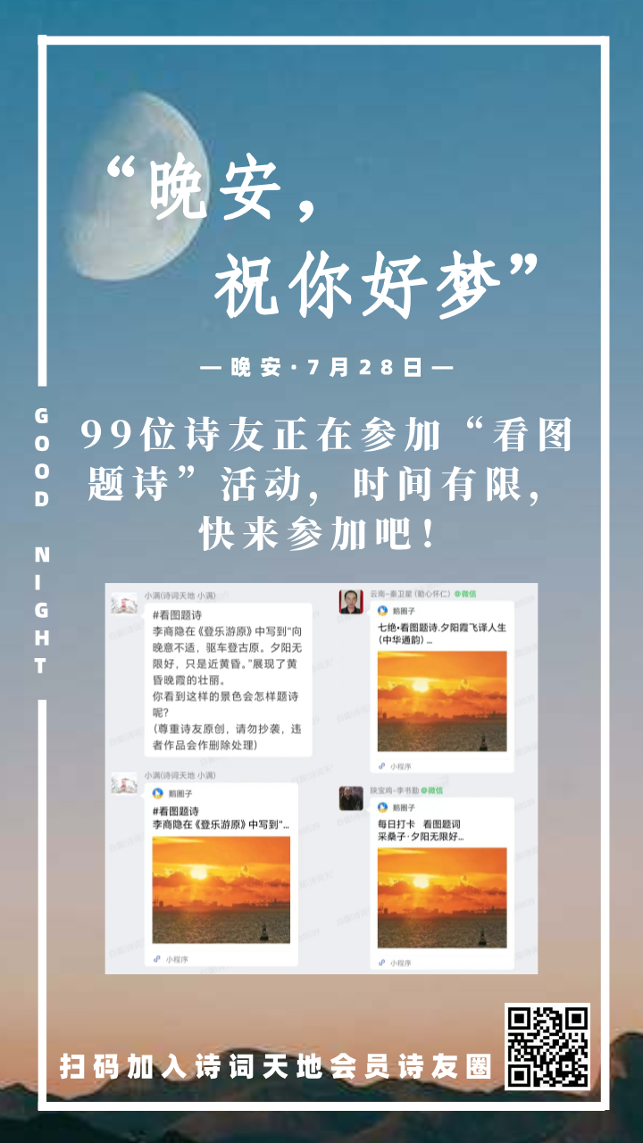 晚安海报丨99位诗友正在参加“看图题诗”活动,时间有限,快来参加吧!
