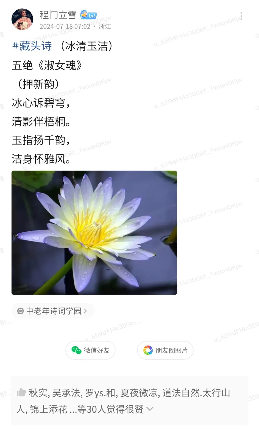 古往今来,藏头诗一直是文人爱好者所喜爱的,也创造出无数佳作,因此诗词天地也把“藏头诗”、“看图题诗”作为会员圈经典特有活动之一,每周一、三、五记得来参加!