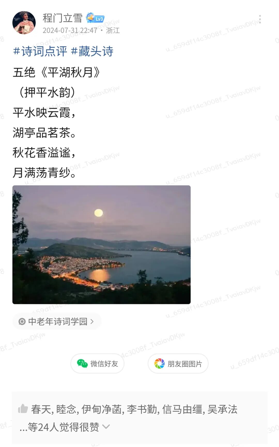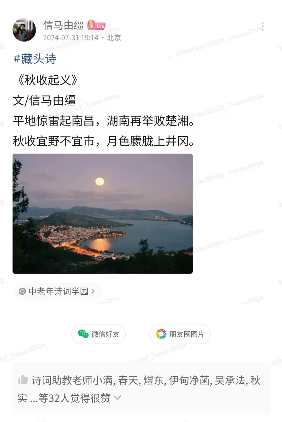 古往今来,藏头诗一直是文人爱好者所喜爱的,也创造出无数佳作,因此诗词天地也把“藏头诗”、“看图题诗”作为会员圈经典特有活动之一,每周一、三、五记得来参加!