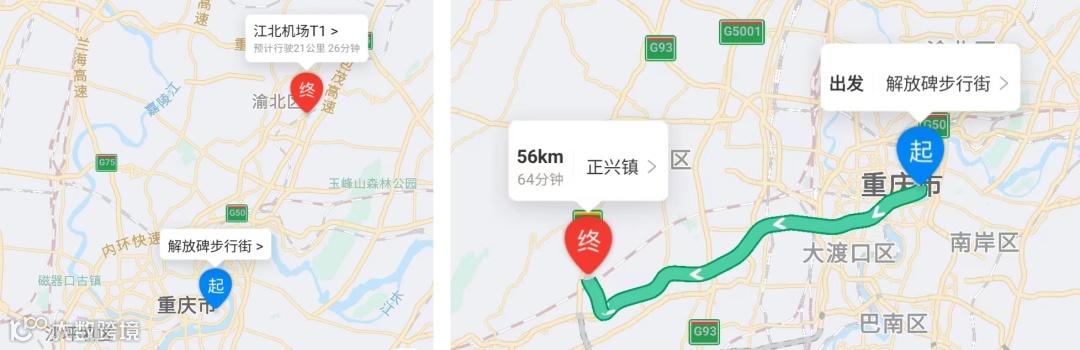 从重庆市中心到两个机场需要的时间↓