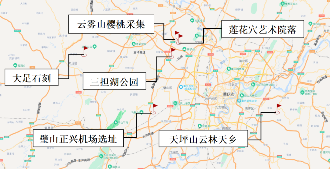 (重庆璧山正兴机场还未建好,以正兴镇代替示意)