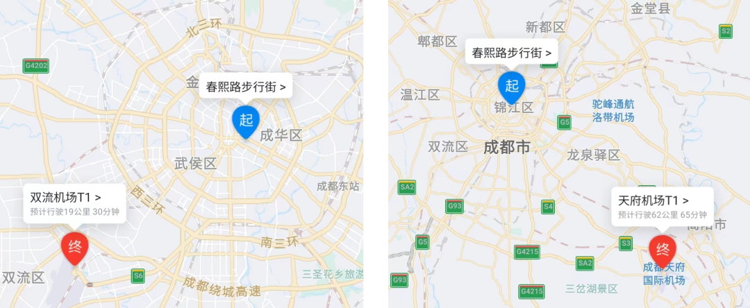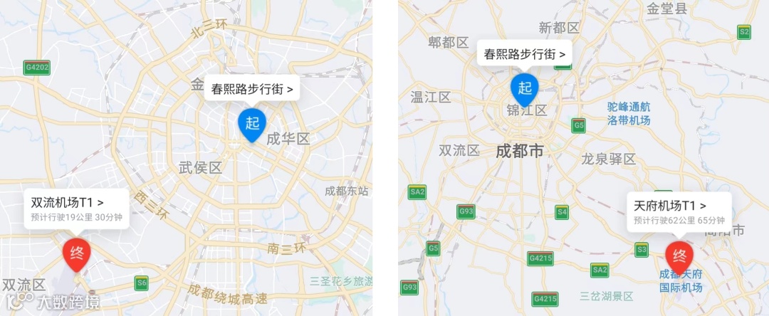 从成都市中心到两个机场需要的时间↓