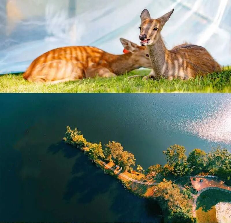 萌宠乐园内孔雀、梅花鹿、土拨鼠等小动物们憨态可掬,围着露营基地的篝火一起看一场露天电影,伴随着星光入眠,简直是周末家庭聚会溜娃的好去处。