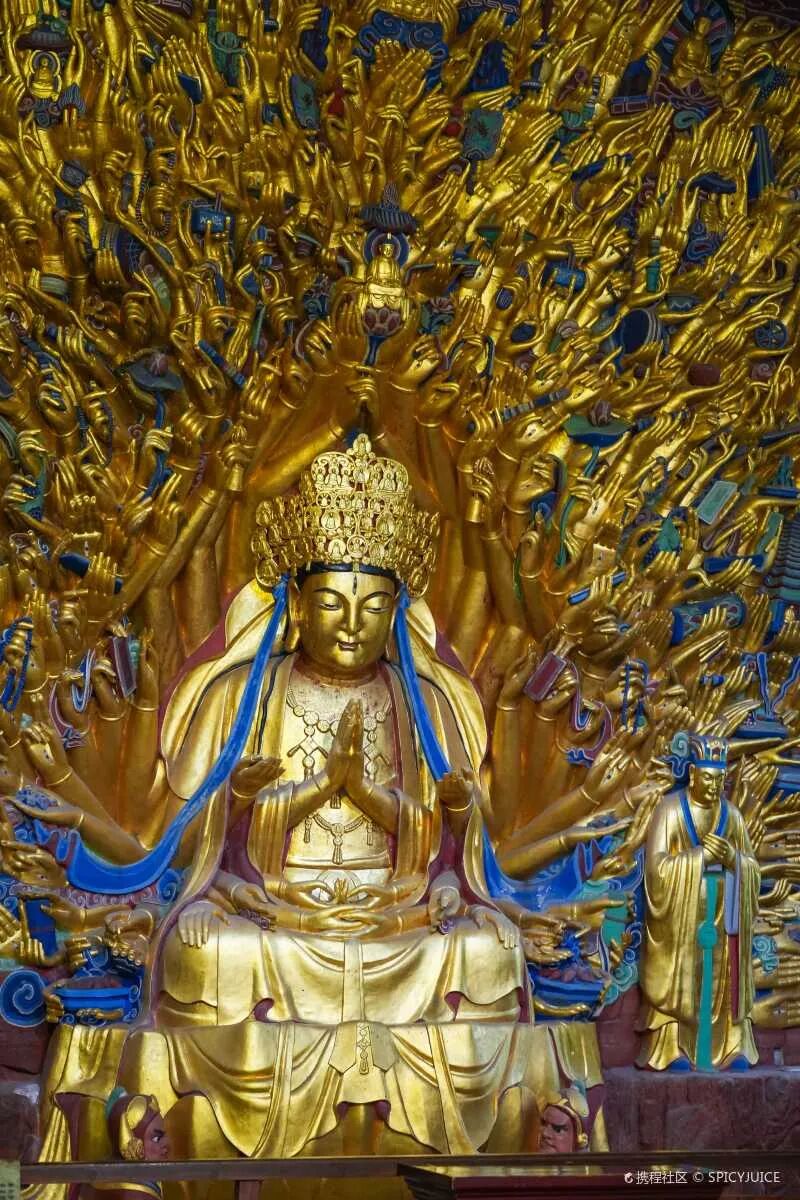 每一尊雕塑栩栩如生,佛像上的金箔油彩经历千年的风霜雨露依然散发着光芒,千手观音塑像恢宏华丽,让人见之难忘。