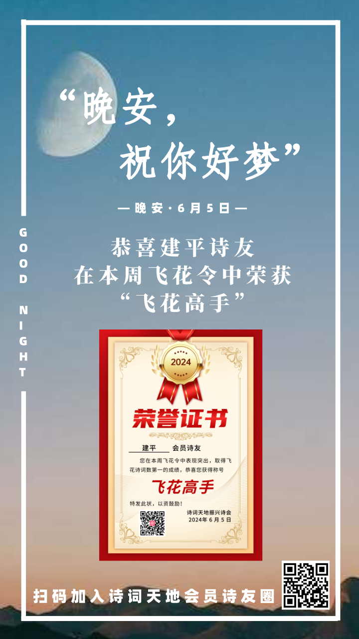 晚安海报丨恭喜建平诗友,在本周飞花令中荣获“飞花高手”称号