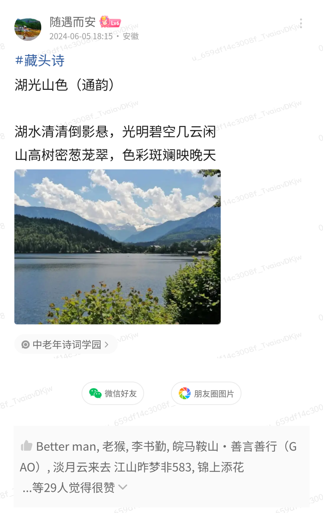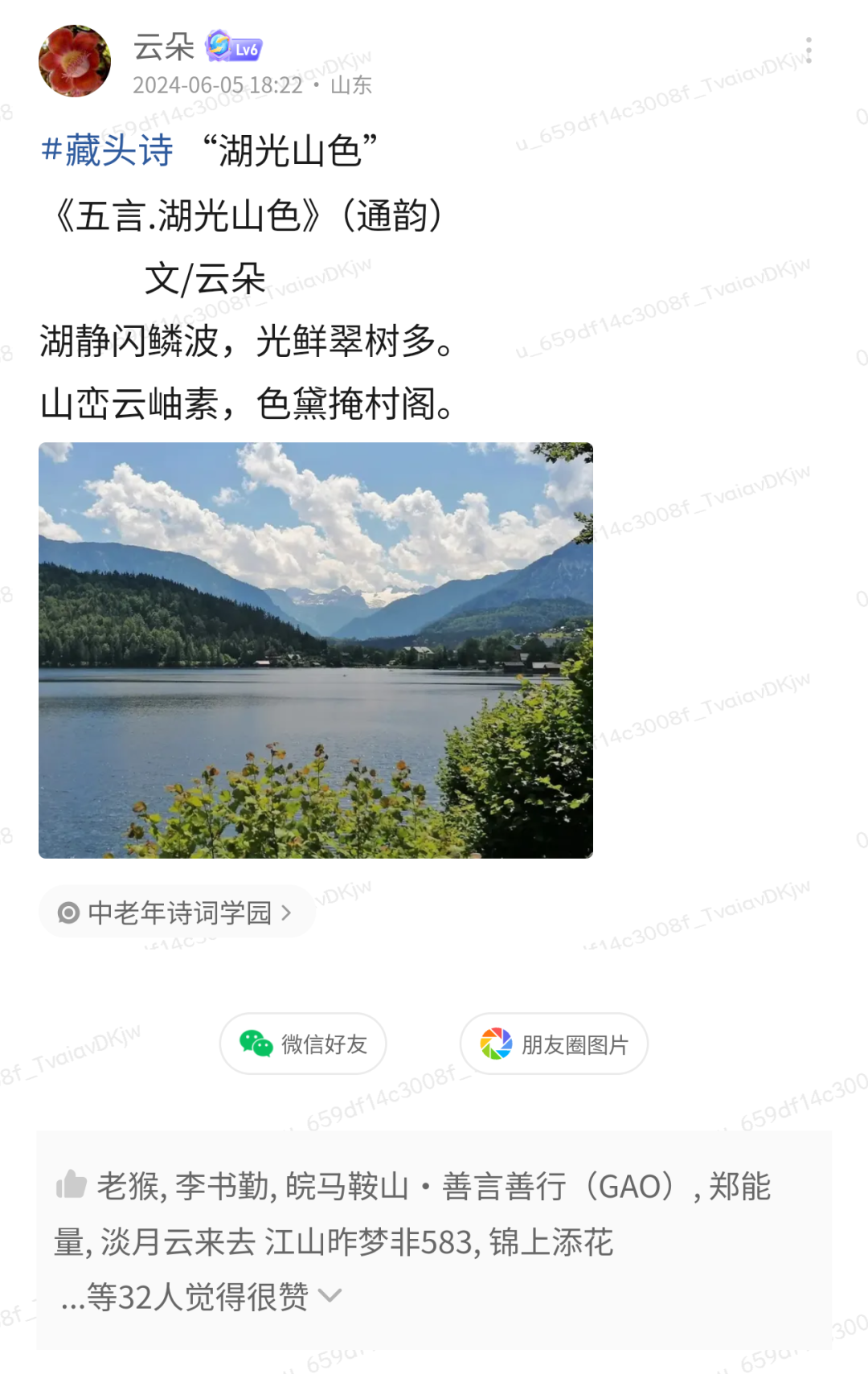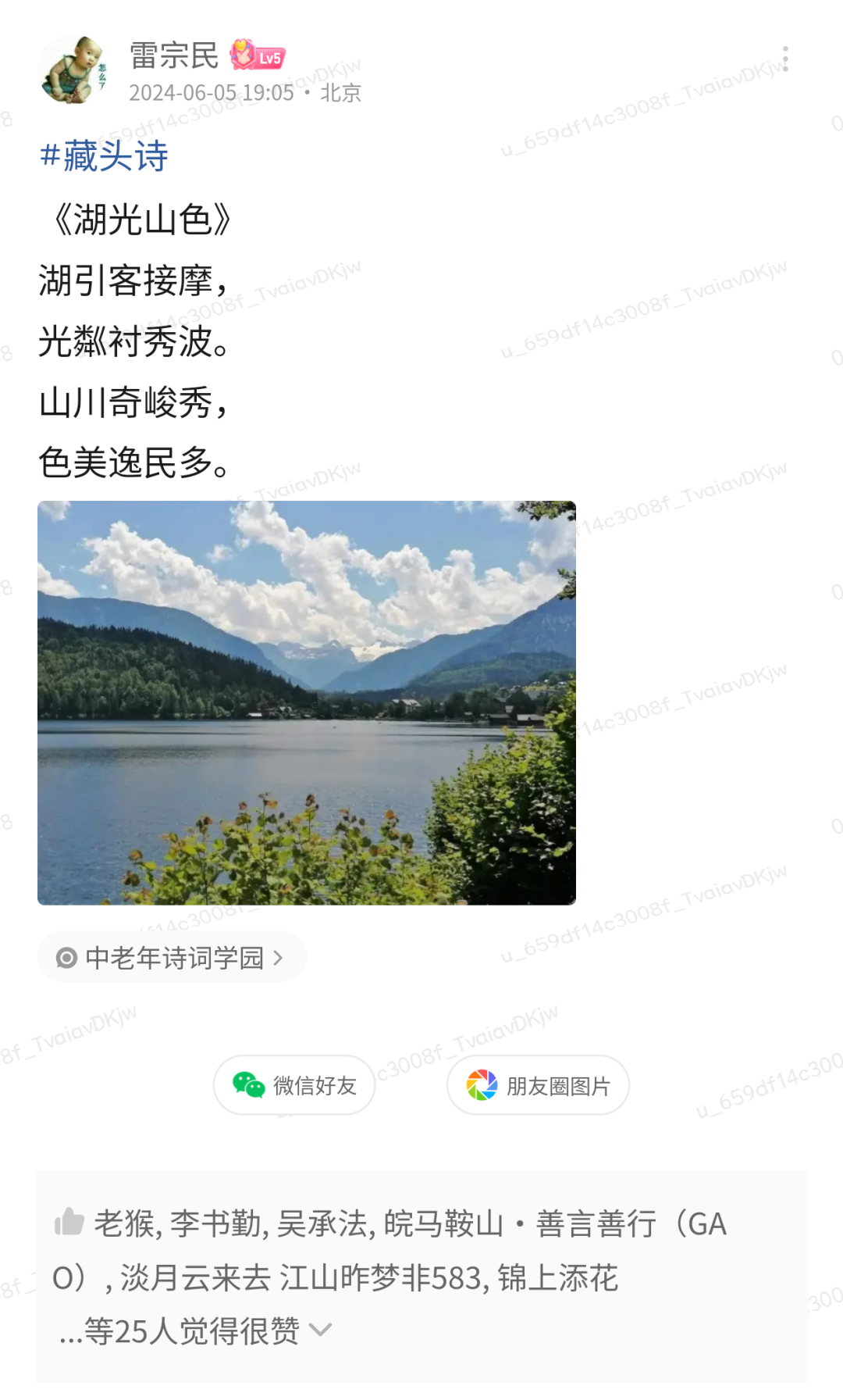 古往今来,藏头诗一直是文人爱好者所喜爱的,也创造出无数佳作,因此诗词天地也把“藏头诗”、“看图题诗”作为会员圈经典特有活动之一,每周一、三、五记得来参加!