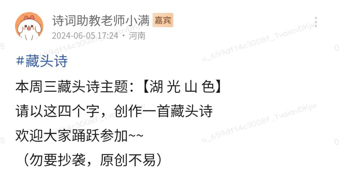 如果你对本期活动感兴趣,快把你的诗词发出来,写一首藏头诗。