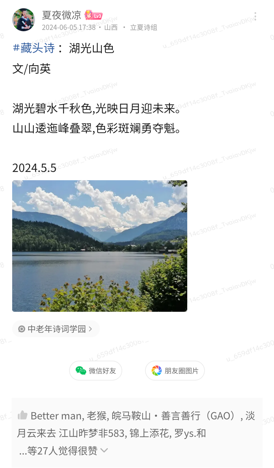 本期的“藏头诗”活动一发出,就有众多诗友参与,作出很多高质量诗词,一起去看看。