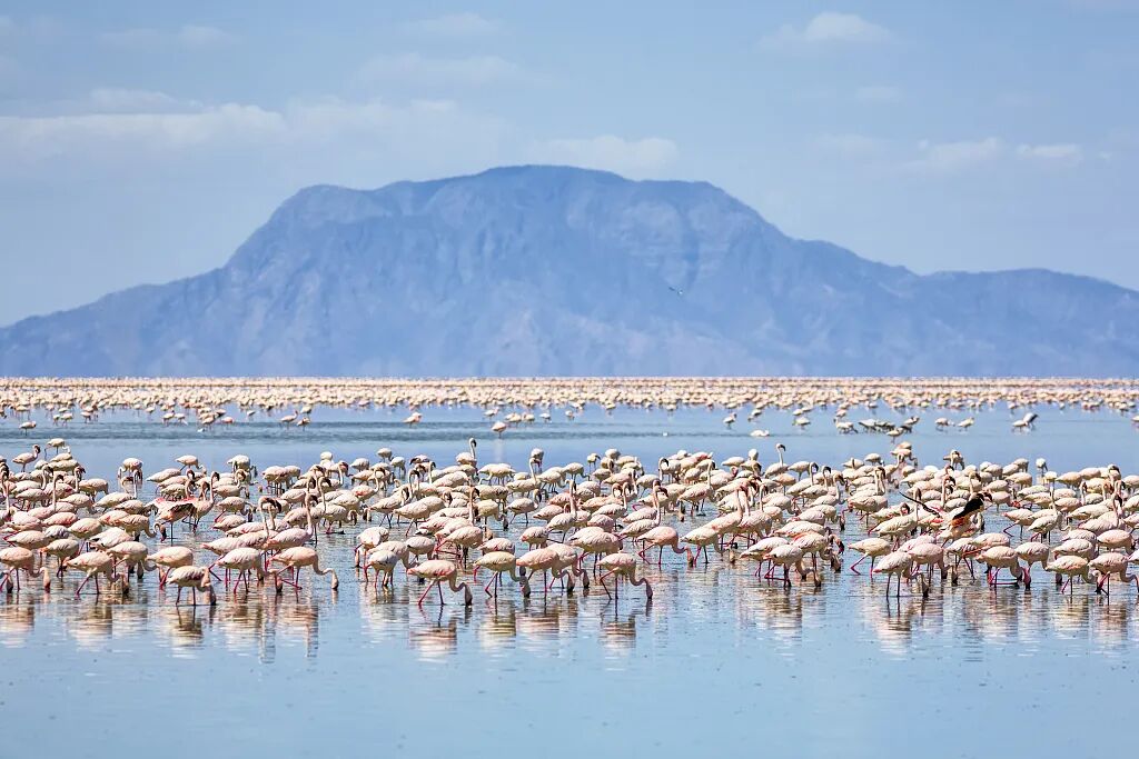 不过凡事总有例外,这片其他生物的“死亡之地”却成了火烈鸟的世外桃源,大约200万只火烈鸟会将这里作为居住地,铺天盖地的红色飞鸟吸引了诸多鸟类爱好者。
