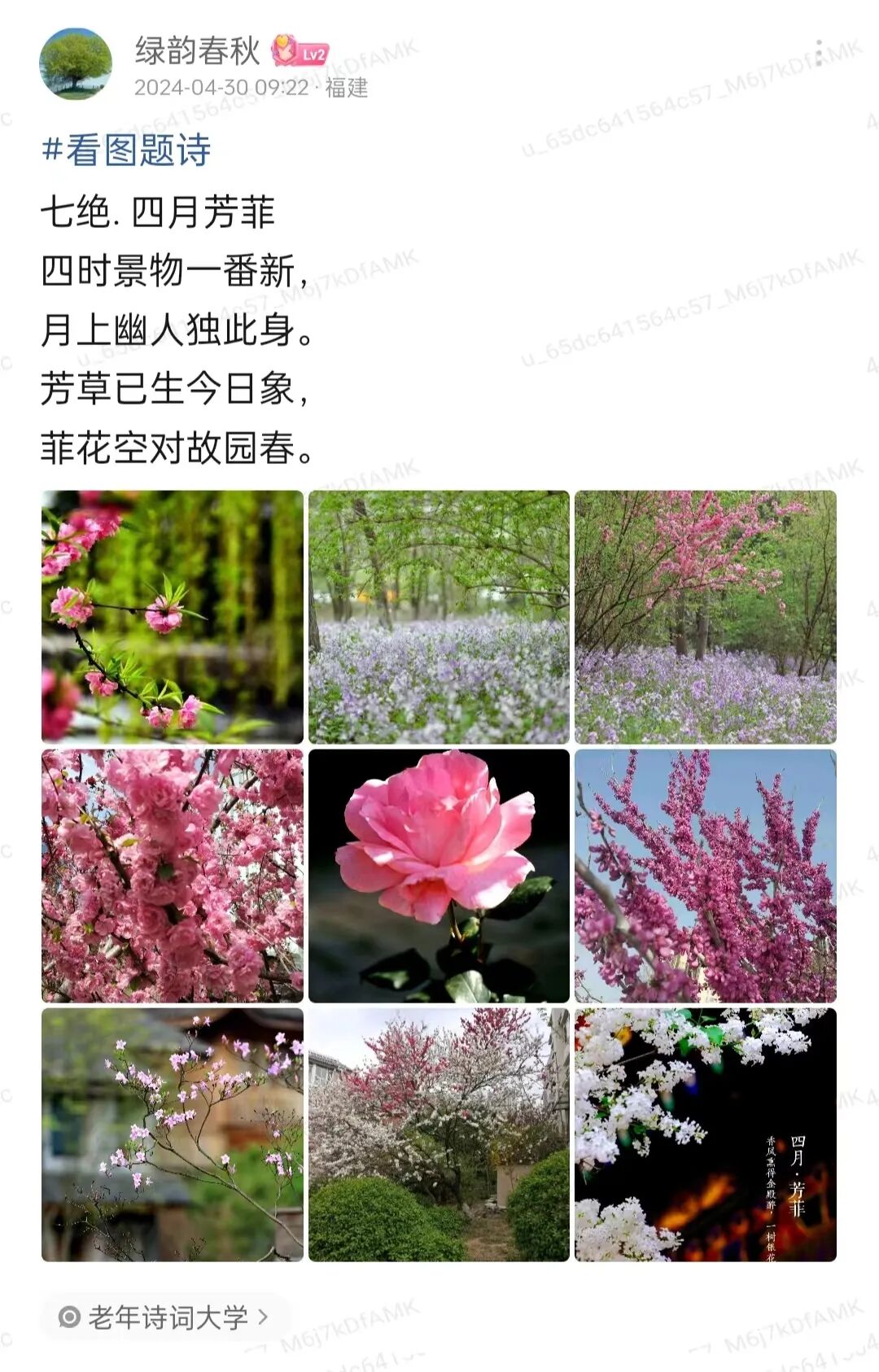看图题诗活动自古都很受文人喜爱,在一个图片的留白处,题上一首抒发自己感情的小诗,意境之美,感情之深,全都跃然纸上。