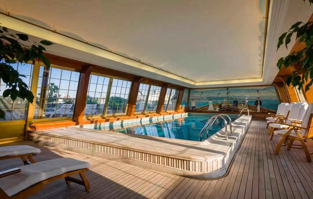 顶楼还有一个著名的船形泳池,出自替希腊船王欧纳西斯造船的设计师之手,随时可以从不同角度欣赏埃菲尔铁塔的壮观景色。