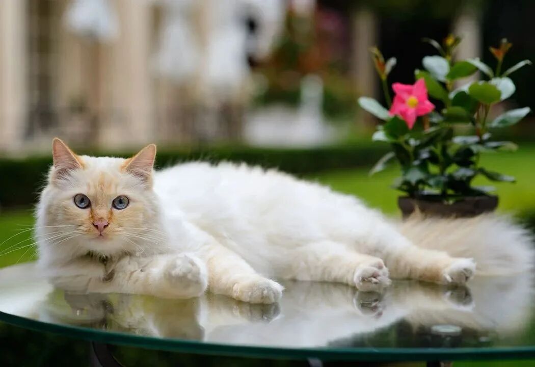 酒店的两只“猫住客”调皮的卧在阳光下,偶尔露出肚皮打个哈欠,看起来格外慵懒。