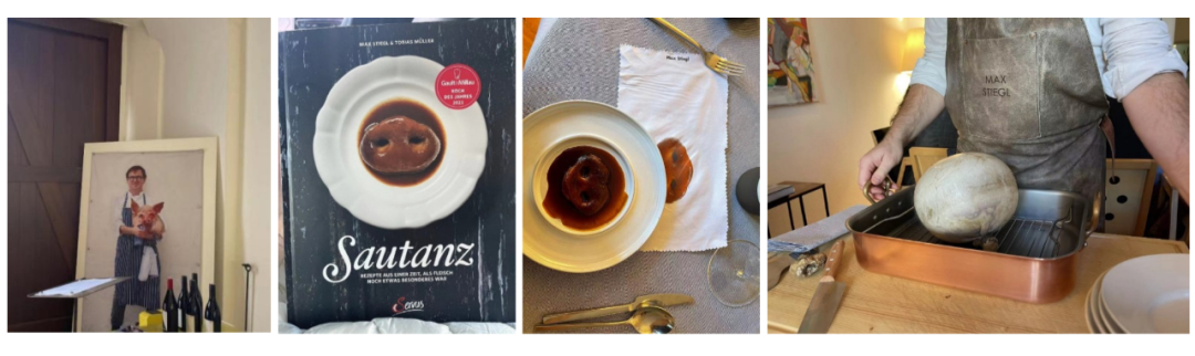 印象最深刻的一餐是在维也纳的一家米其林餐厅GutPurbach,餐厅老板兼主厨的Max Stiegl为我们精心烹制了他的拿手菜肴。Mix Stiegl的料理理念是:当我们在使用动物作为食材时,一定全部使用并物尽其用,让食客对食材有清晰的认知,这也是对食材本身最大的尊重。当天,我们食用了久负盛名的烩猪鼻和用猪膀胱包裹着猪的其他部件煨制而成的主菜,用刀轻轻剖开,香气四溢,拌着肉汁轻轻咀嚼,胃口瞬间被唤醒,是一次美味而特别的体验。