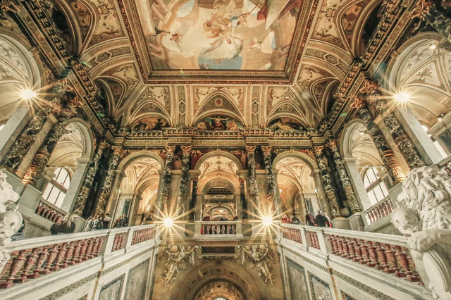 金色大厅,作为维也纳最古老、最现代化的音乐厅,是维也纳爱乐乐团的常年演出场地,每当演奏音乐时,弦乐器与管乐器达到了绝妙的平衡,被誉为世界上音响效果最出色的音乐厅之一,也是每一位到访维也纳游客的必去打卡地。我们此行也不例外,慕名前来拜访。置身于雍容华美的金色大厅,仿佛一下子穿越回19世纪,聆听古典的音乐之声,内心震撼不已。