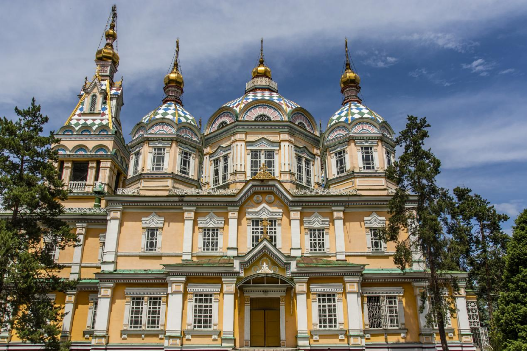 这座建筑曾用做哈萨克斯中央博物馆和音乐厅,在1995年归还俄罗斯东正教会。内部装饰华丽,有许多精美的宗教绘画作品和装饰品。教堂前的小广场上聚集了很多鸽子也有卖鸽粮的人,和美丽的教堂一起成为了独特的风景线。
